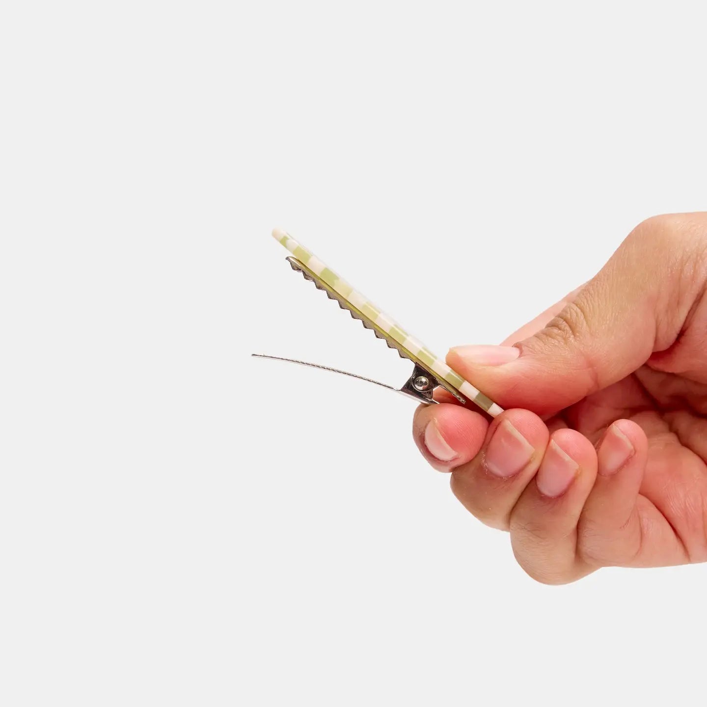 A perfect pair of alligator clips. Small metal teeth provide a strong hold with no snag. Ideal for all hair types and lengths. Great for taming bangs and flyaways. Made from high-quality acetate; a durable, plant-based bio-plastic. Metal hardware is lead and nickel-free. Slight variations will appear with pattern, color, and form due to the handmade nature of the product.
