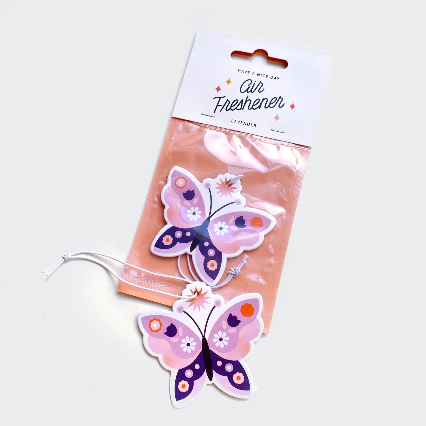 Immerse your car in the soothing scent of lavender with the Along For The Ride Air Freshener by Have A Nice Day. This 2.5in x 4.1in air freshener is designed to add a touch of positivity and color to your everyday commute. Crafted by Steffi Lynn, an illustrator and muralist renowned for her vibrant product designs, this air freshener is a small token of happiness that will accompany you on every journey. It's more than just an accessory; it's a mobile mood booster that fills your car with an uplifting aroma.