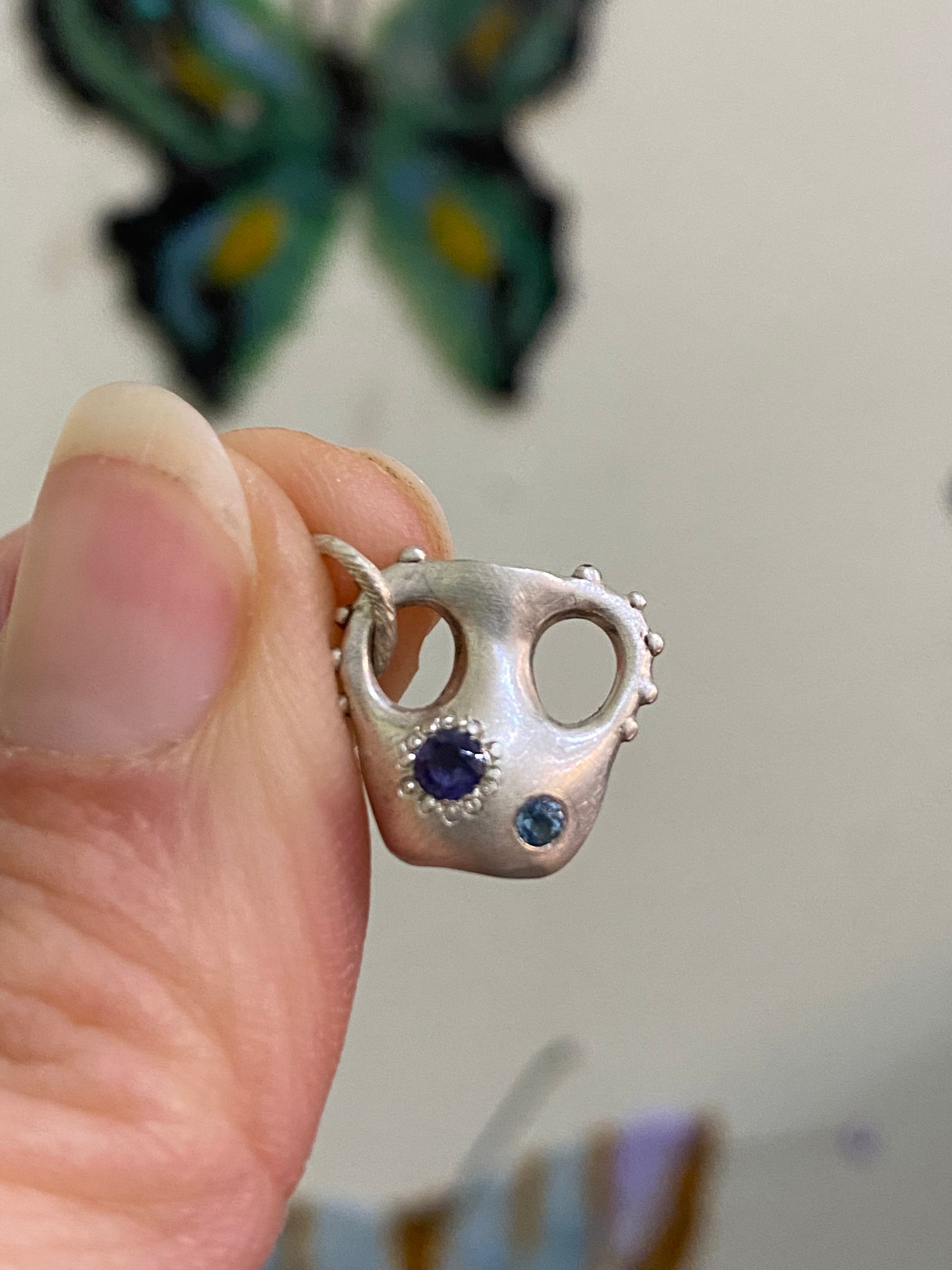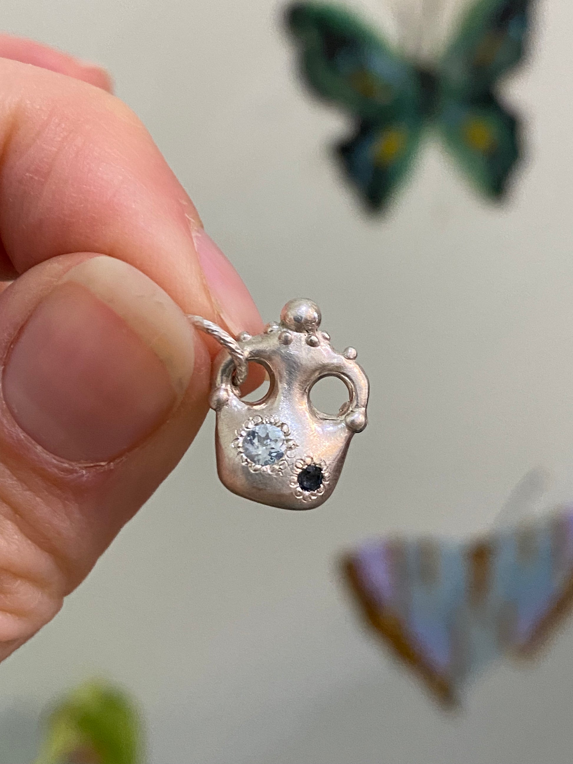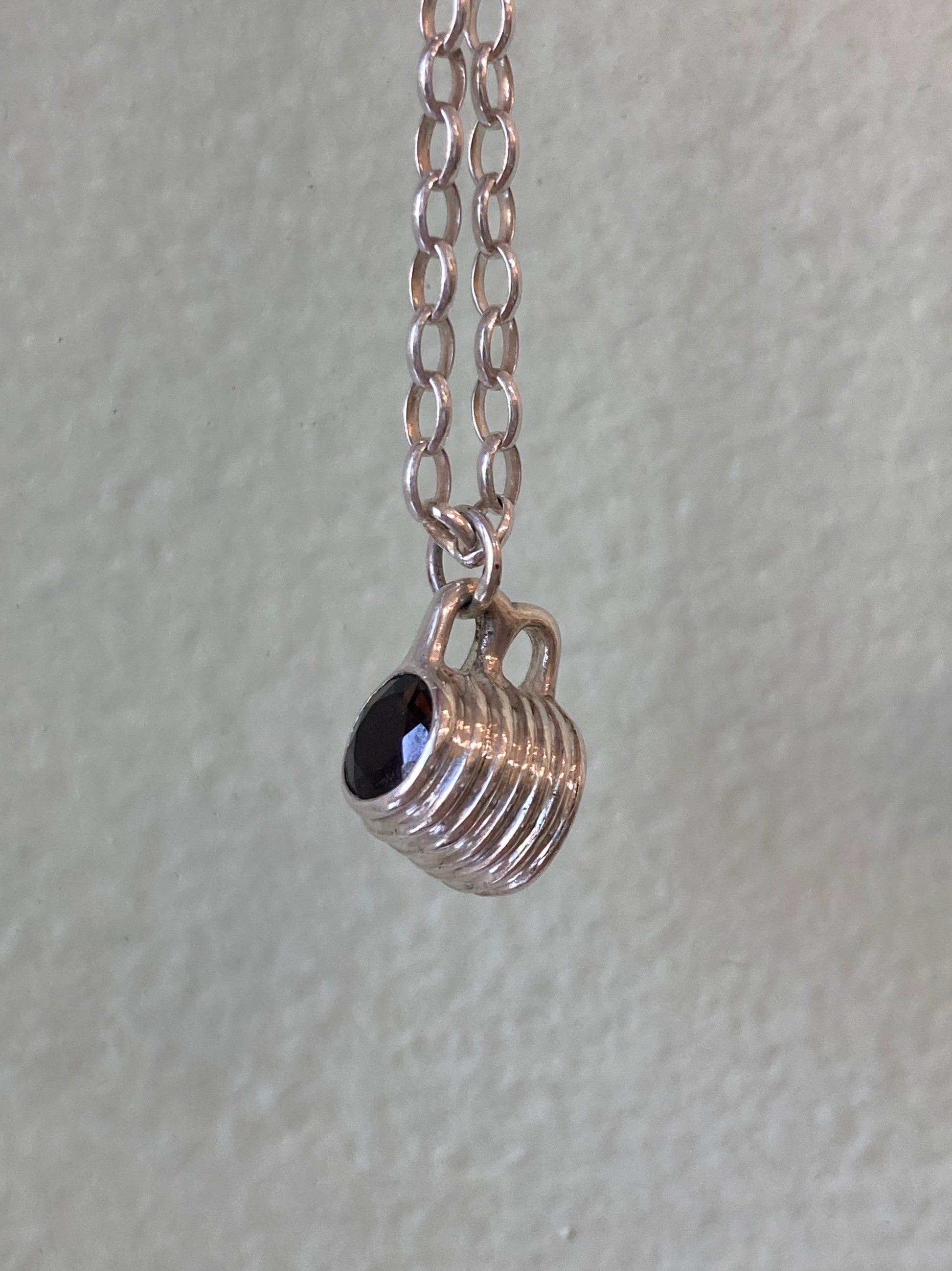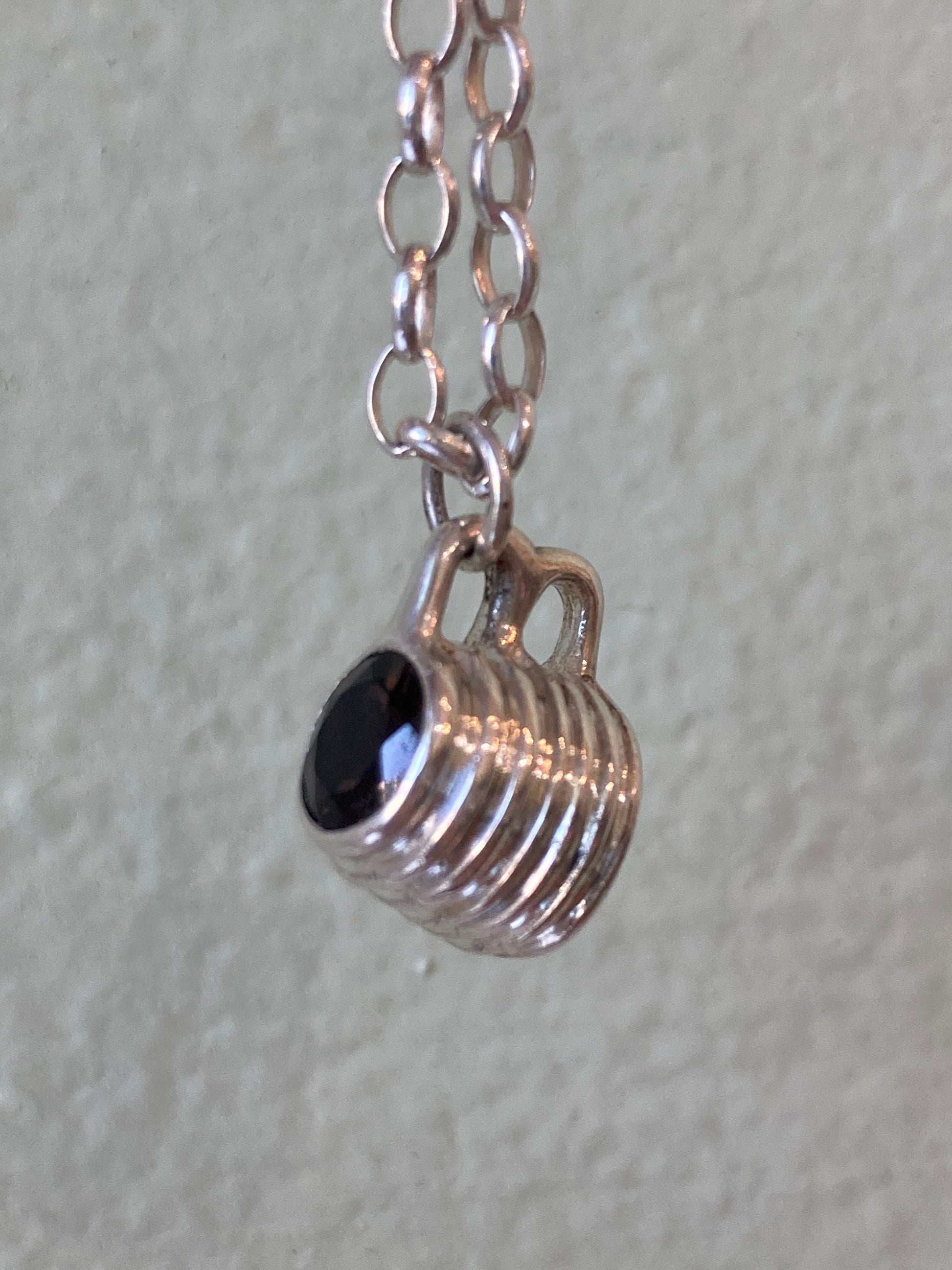 Sterling silver mug charm with Crystal quartz gemstone and 15” chain