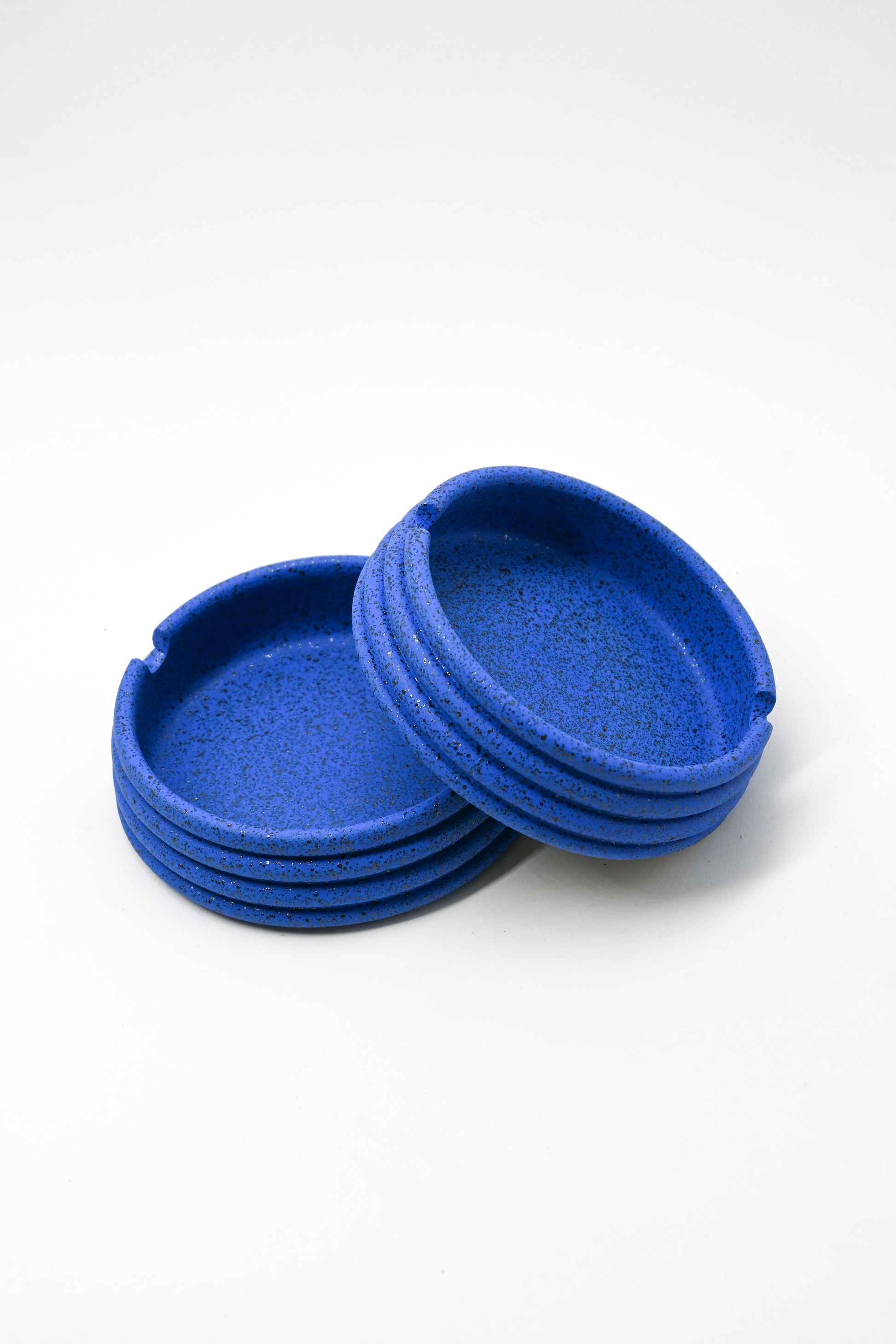 Wheel thrown stoneware ash tray with hand painted glaze design.