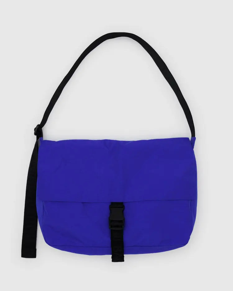 A functional, go-to bag with two large exterior pockets in addition to the main interior compartment. Has an interior laptop sleeve with velcro closure that fits 13/14” laptop in a puffy case.