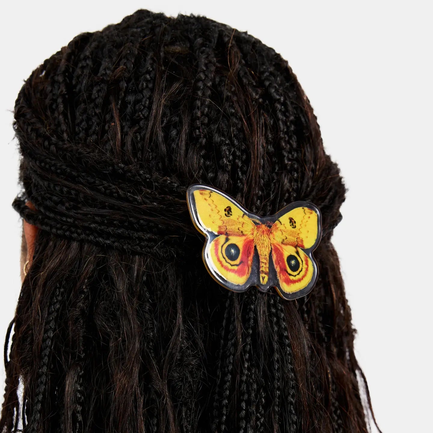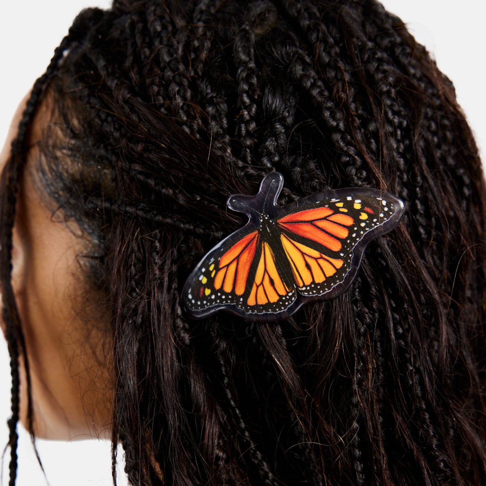 This clip can be used to decorate your hair however you want. Works with all hair types and textures. Made from high quality acetate; a durable, plant based bio-plastic. Metal hardware is lead and nickel-free. Slight variations will appear with pattern, color and form due to the handmade nature of the product. Measures approx 2"L x 3.5"W x 0.25"H
