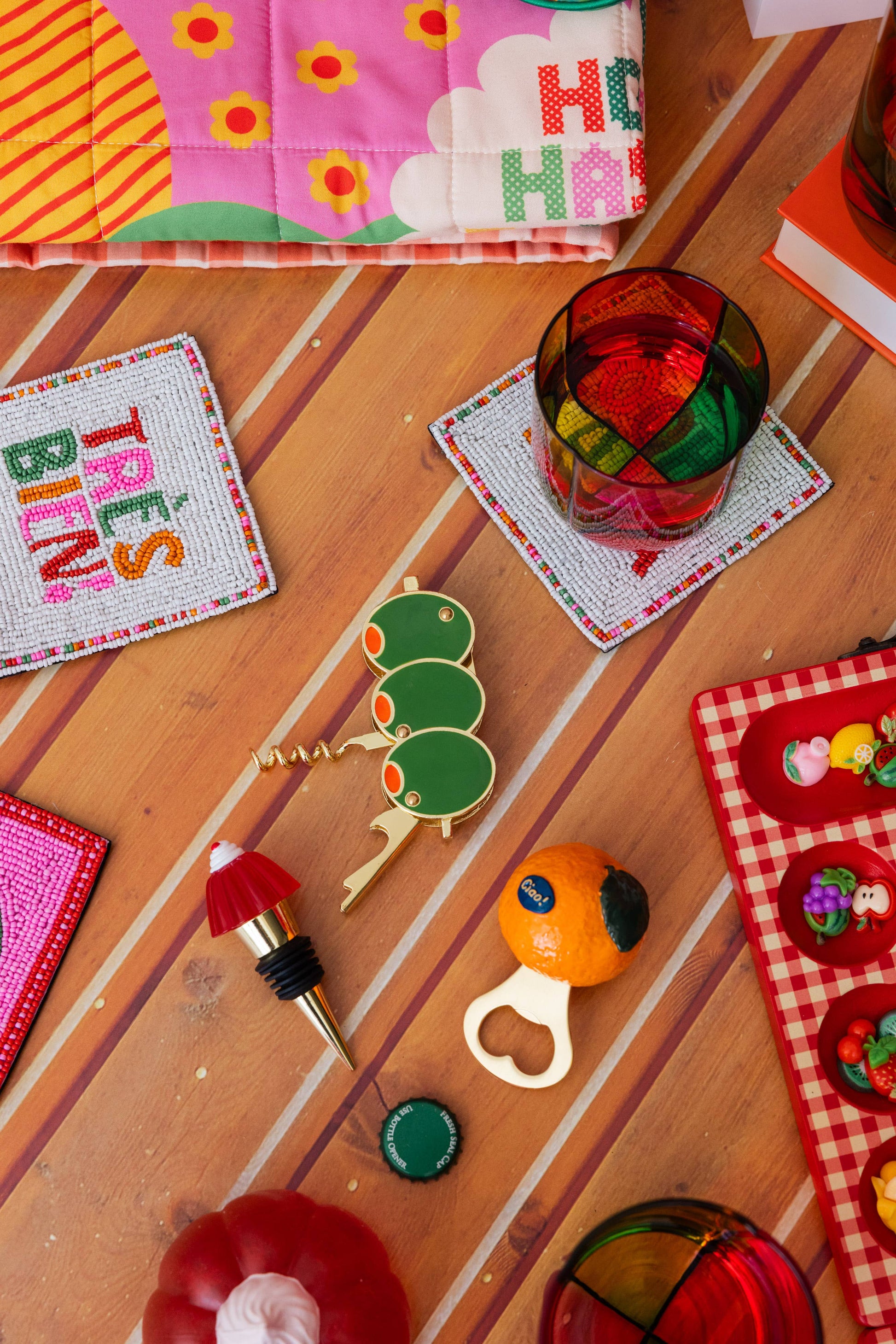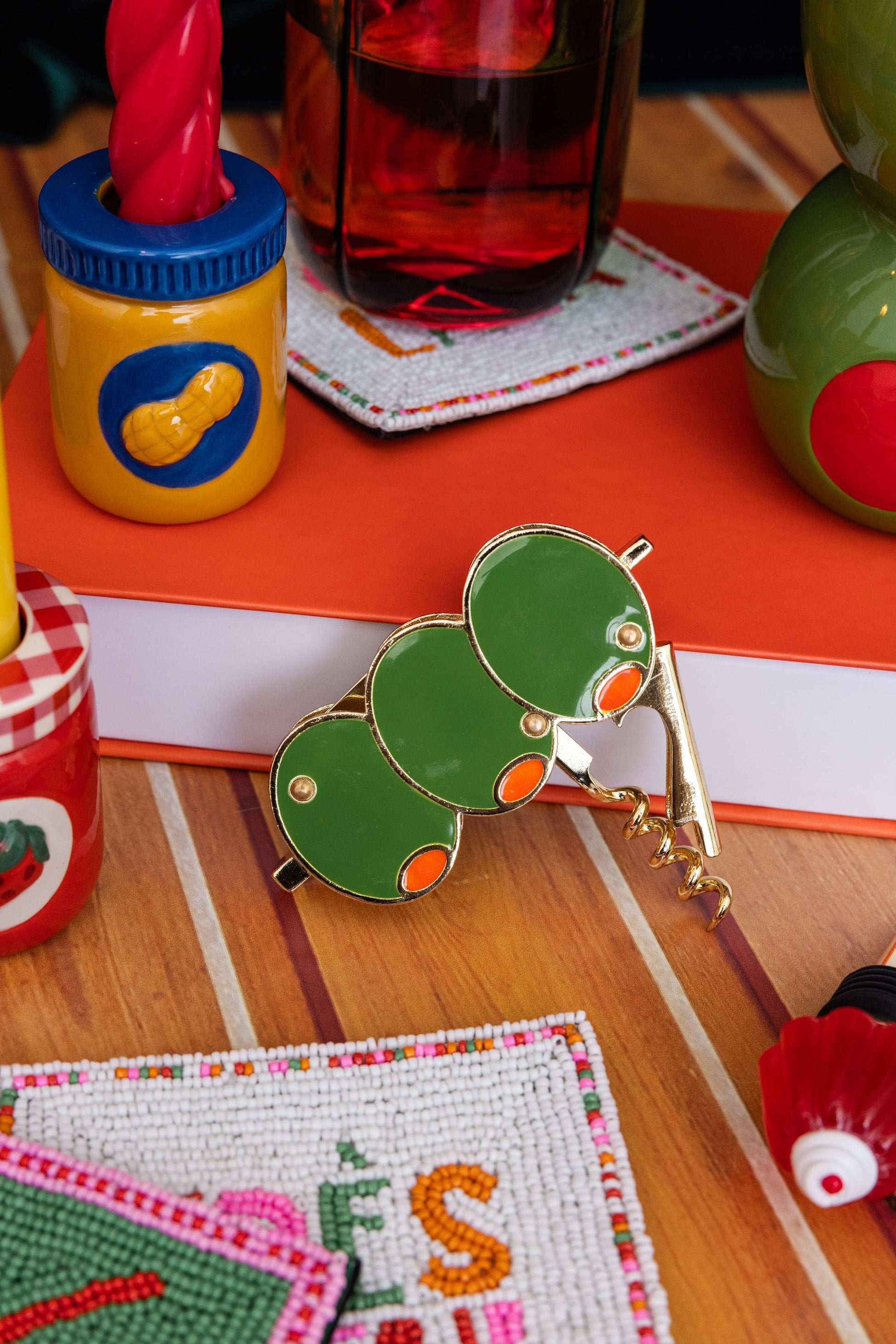 You’ll want to keep this one out of the drawer and on display 24/7. This corkscrew features a fun stacked olive design and also comes with a bottle opener.