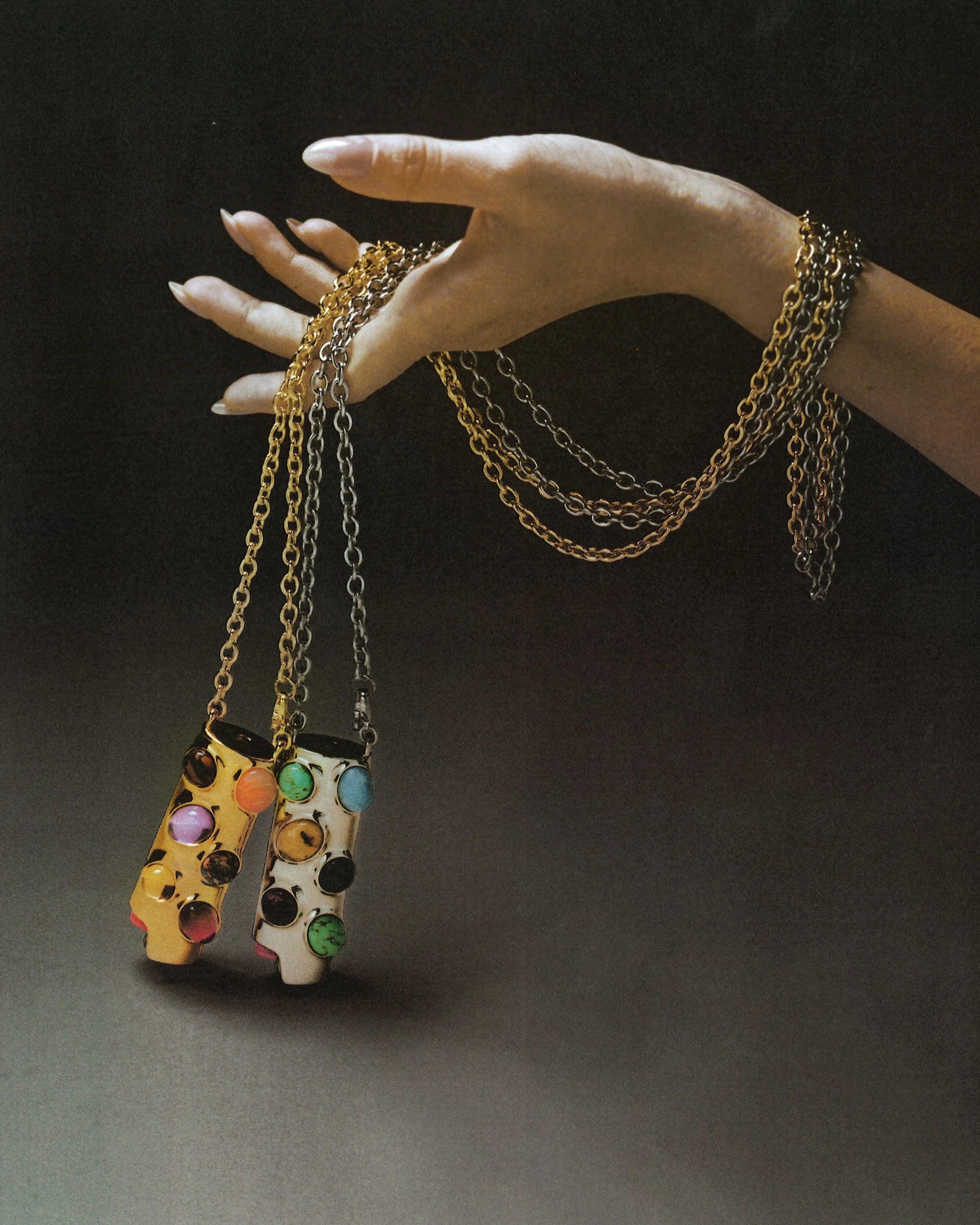 Lighter jewelry, if you will. Add shine to your lighter with a Gemstoned lighter cover on a crossbody chain with our new gemstone colorway, Khaki.