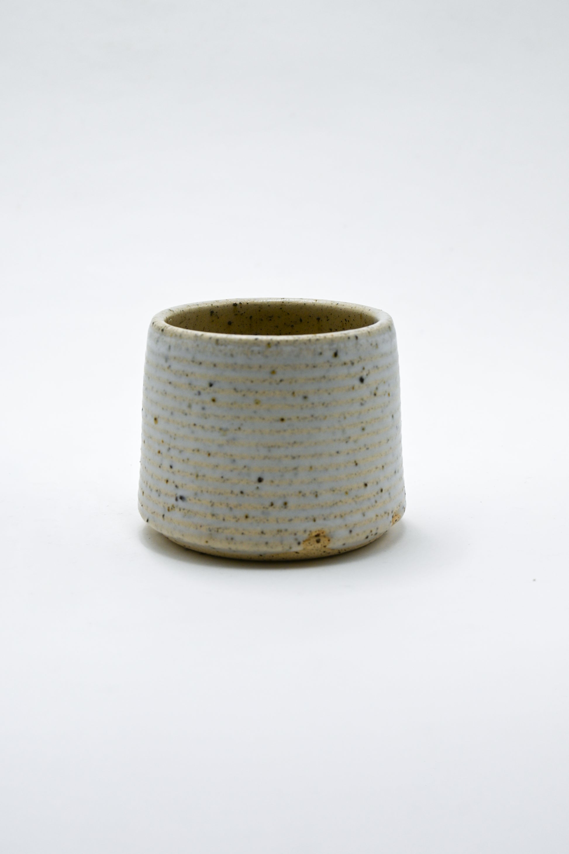 Wheel thrown stoneware cup with hand painted glaze. Food safe.