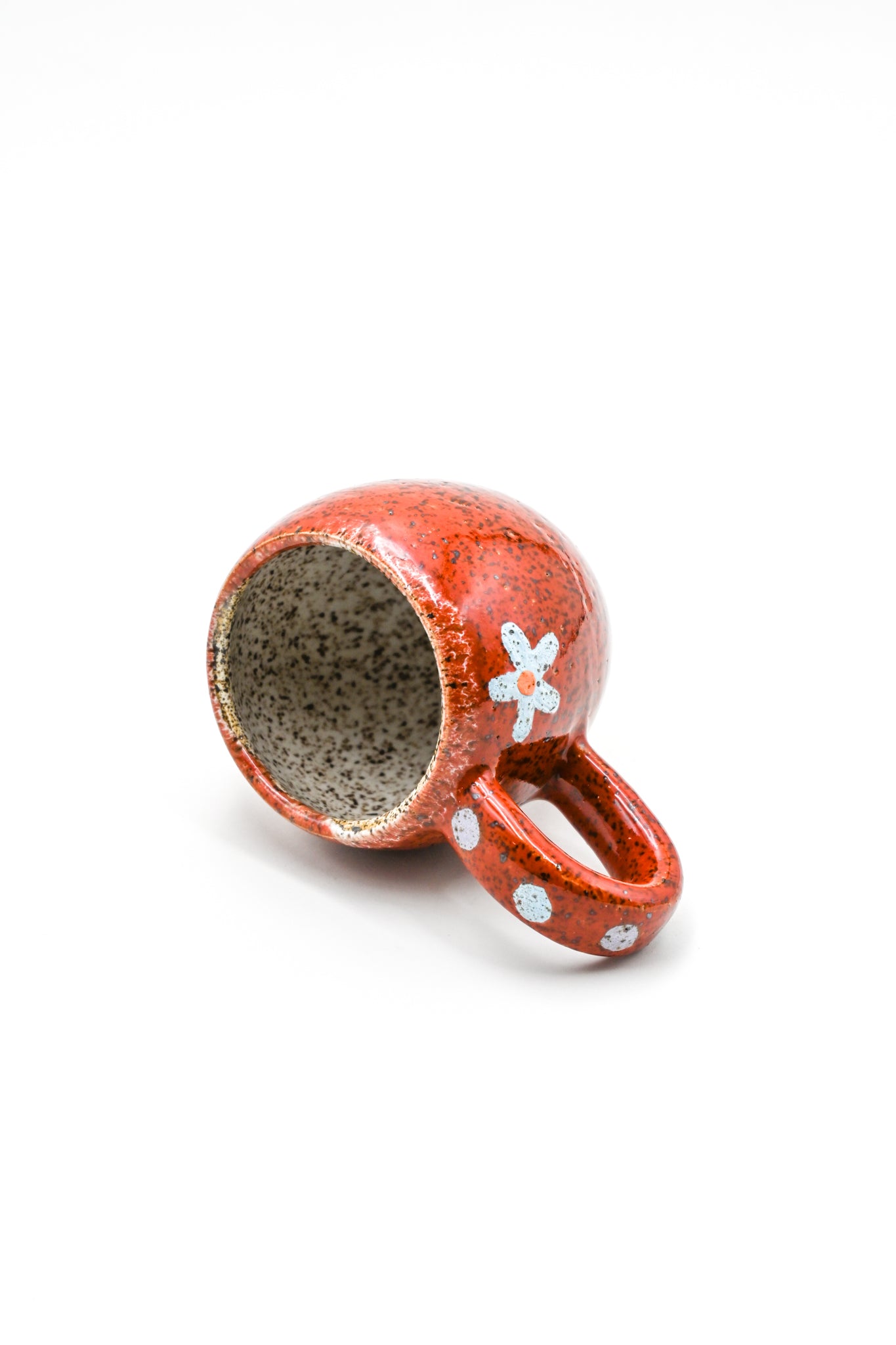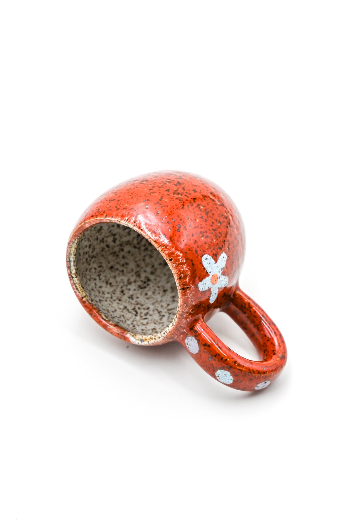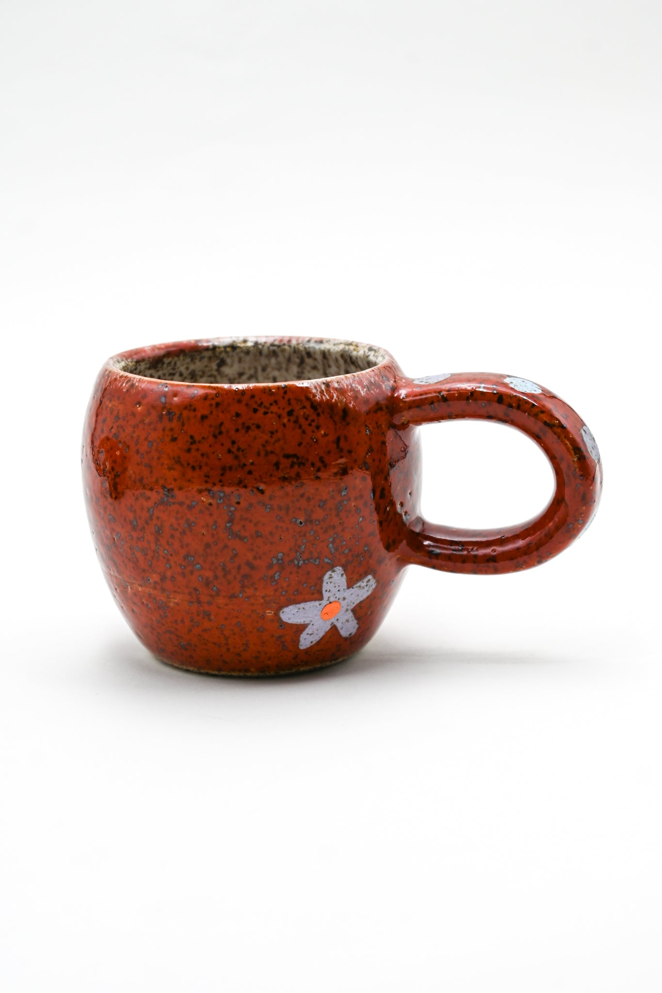 Wheel thrown stoneware espresso mug with hand painted glaze design. Food safe.