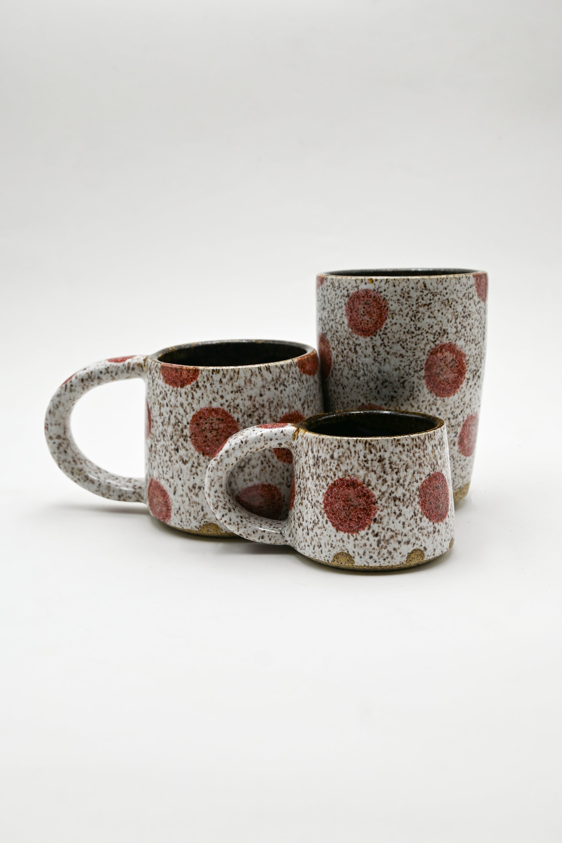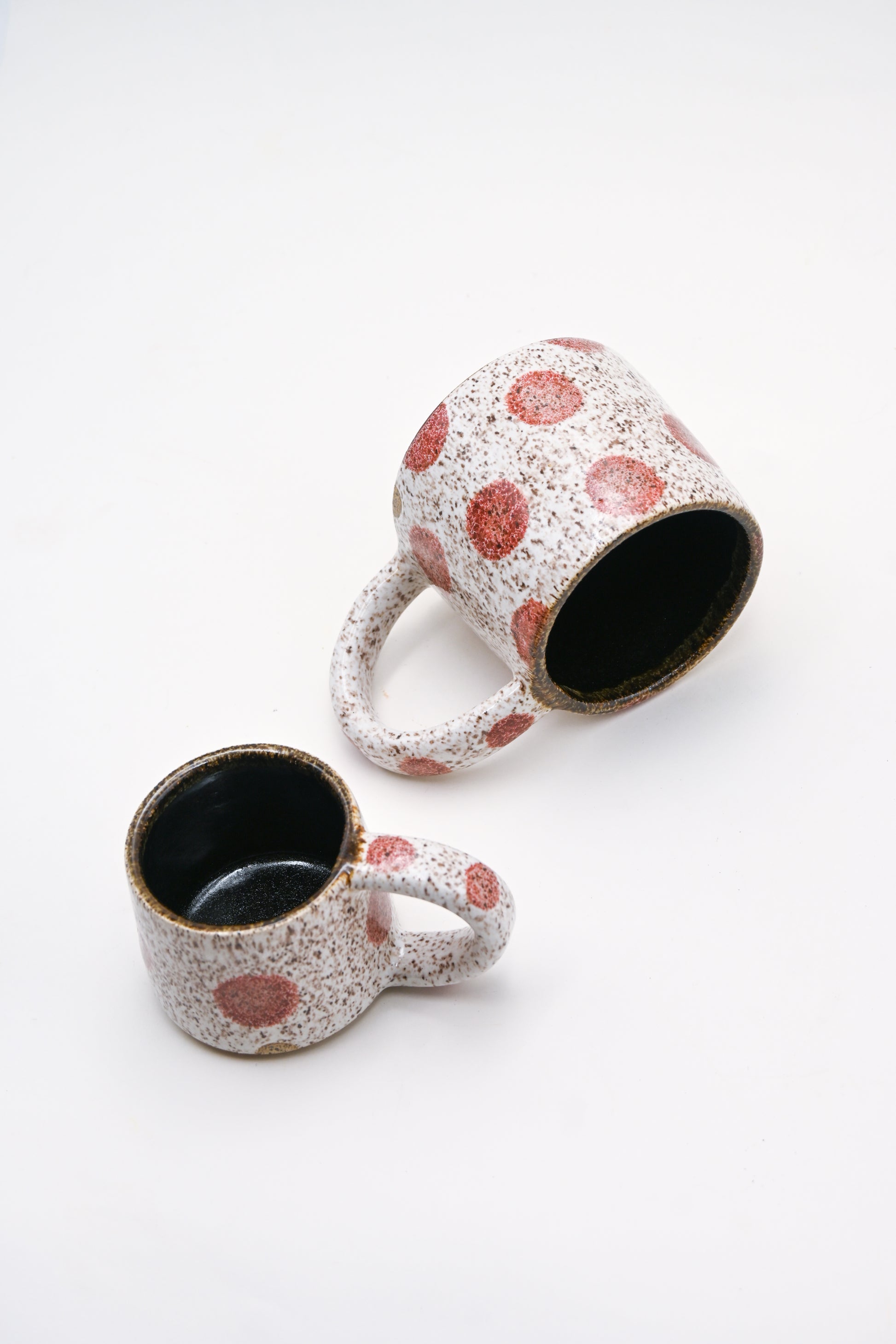 Wheel thrown stoneware espresso mug with hand painted glaze design. Food safe.