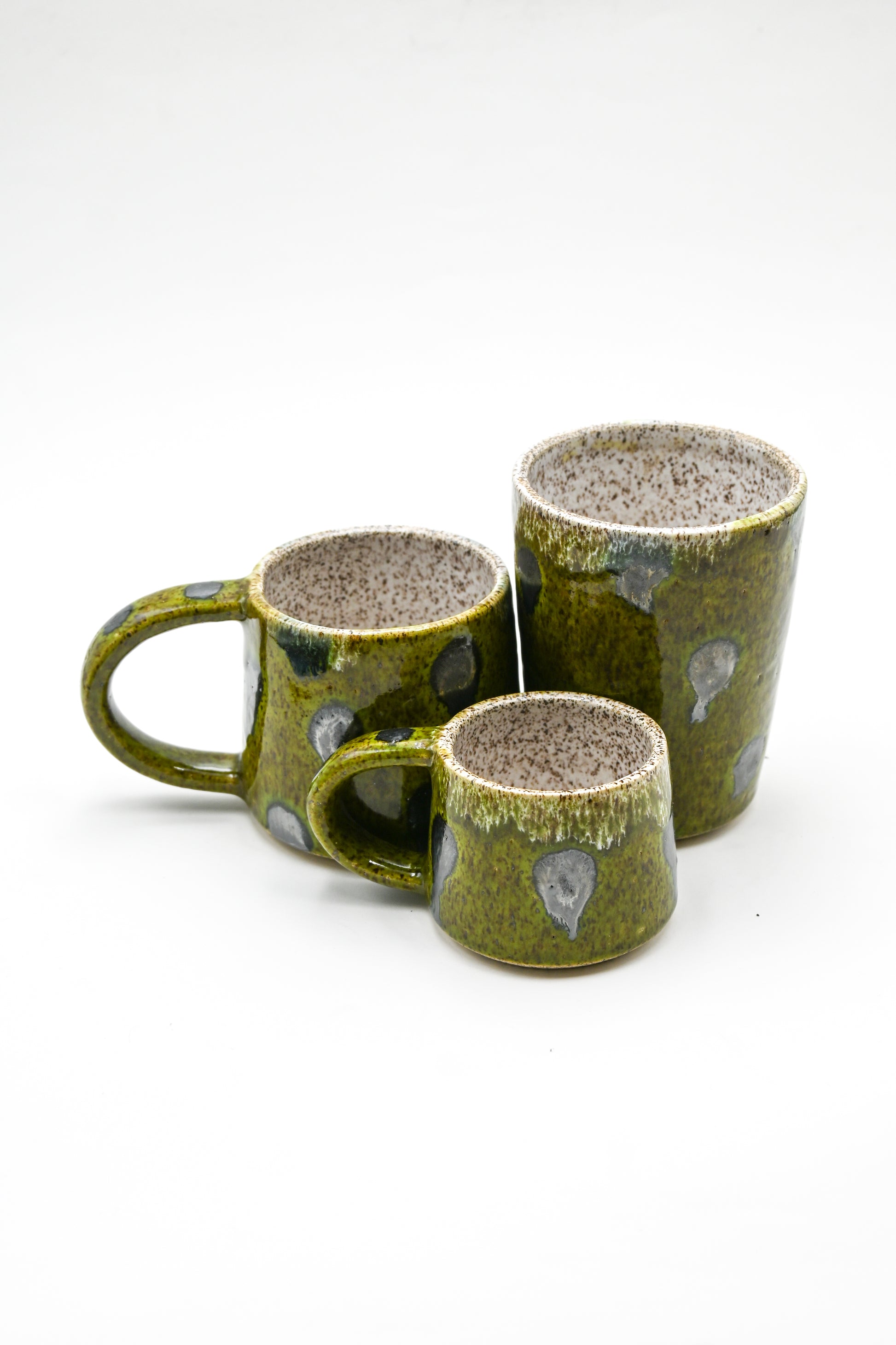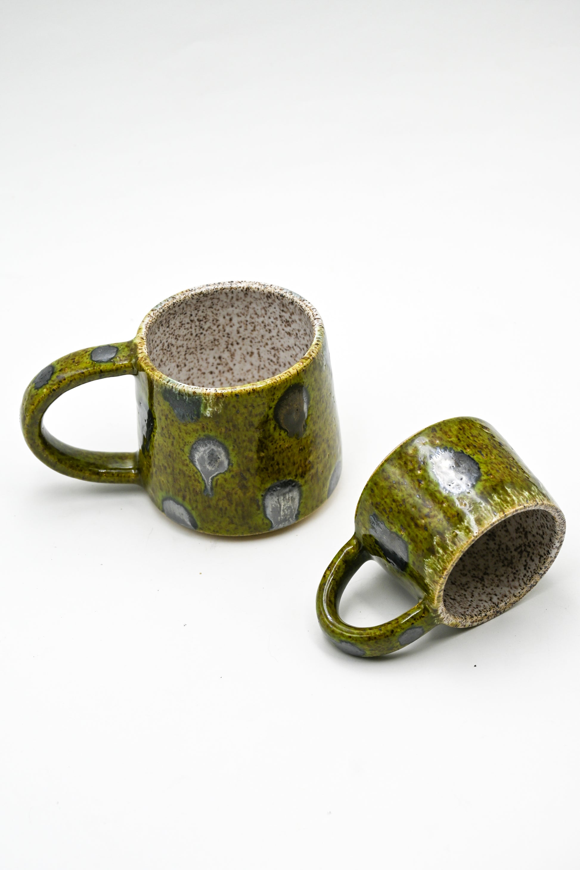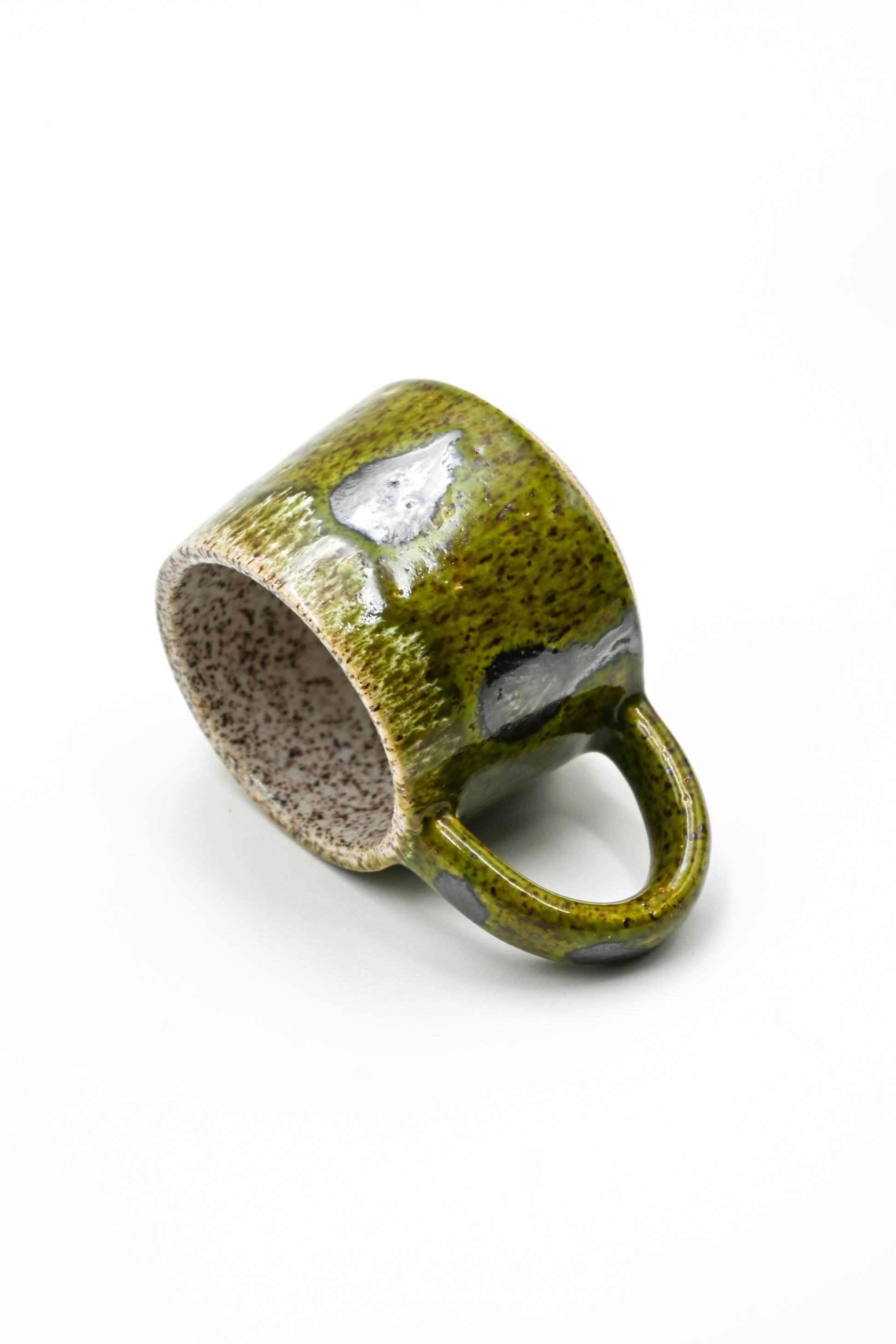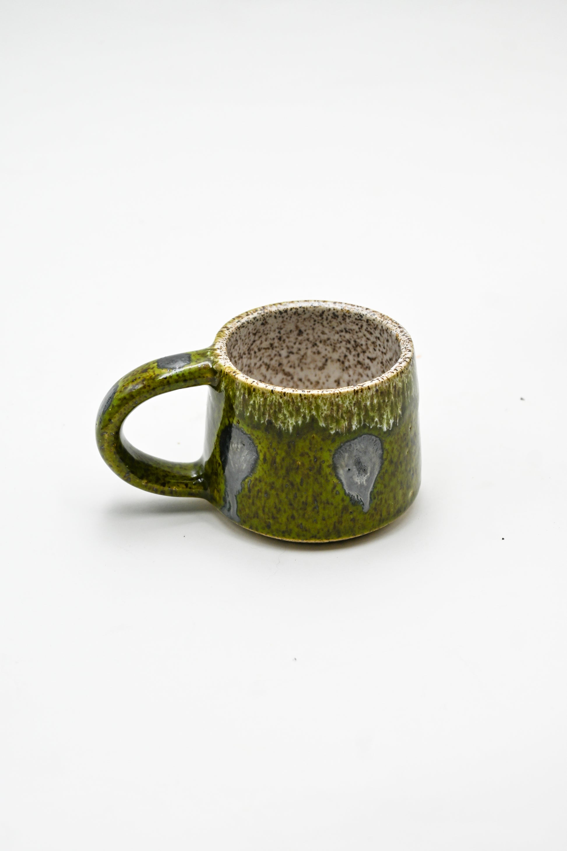 Wheel thrown stoneware espresso mug with hand painted glaze design. Food safe.
