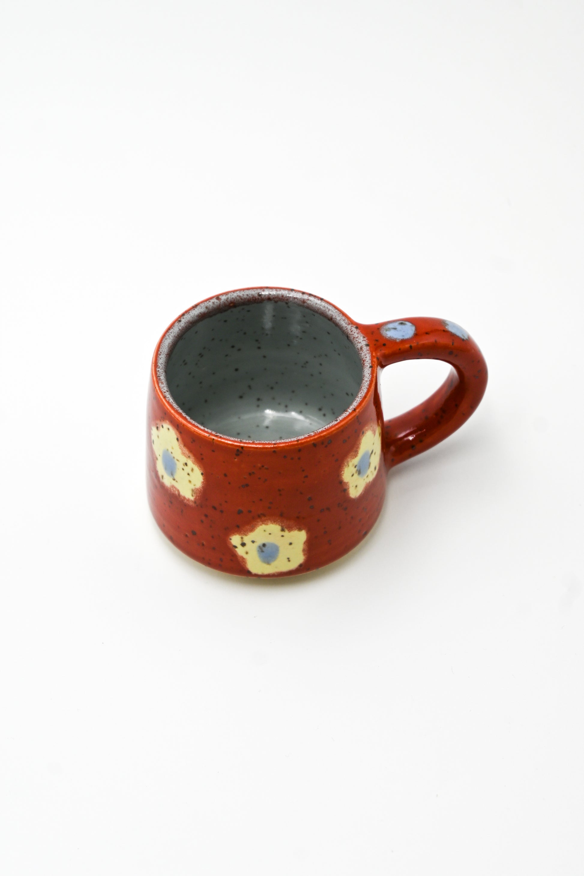 Wheel thrown stoneware espresso mug with hand painted glaze design. Food safe.