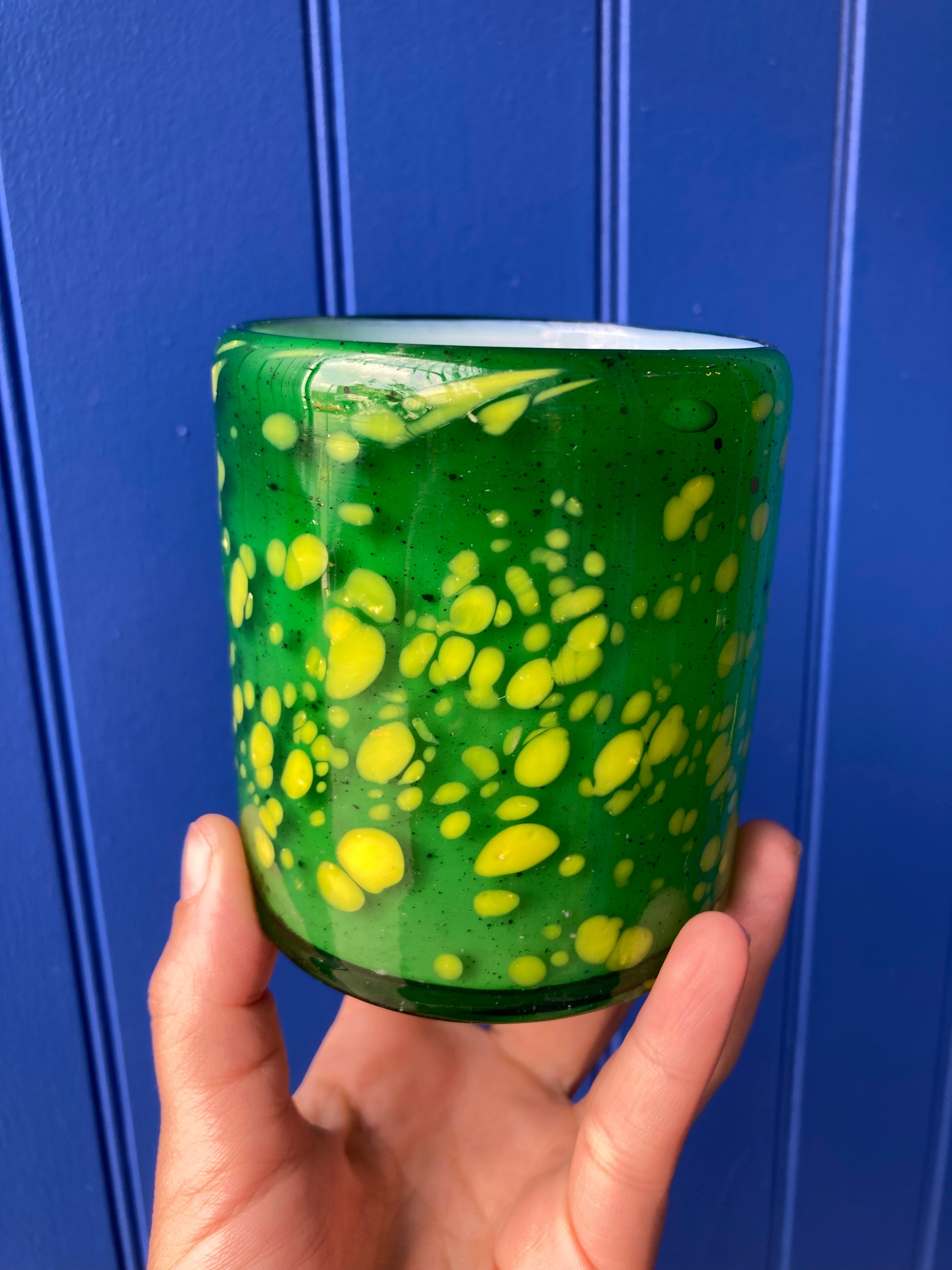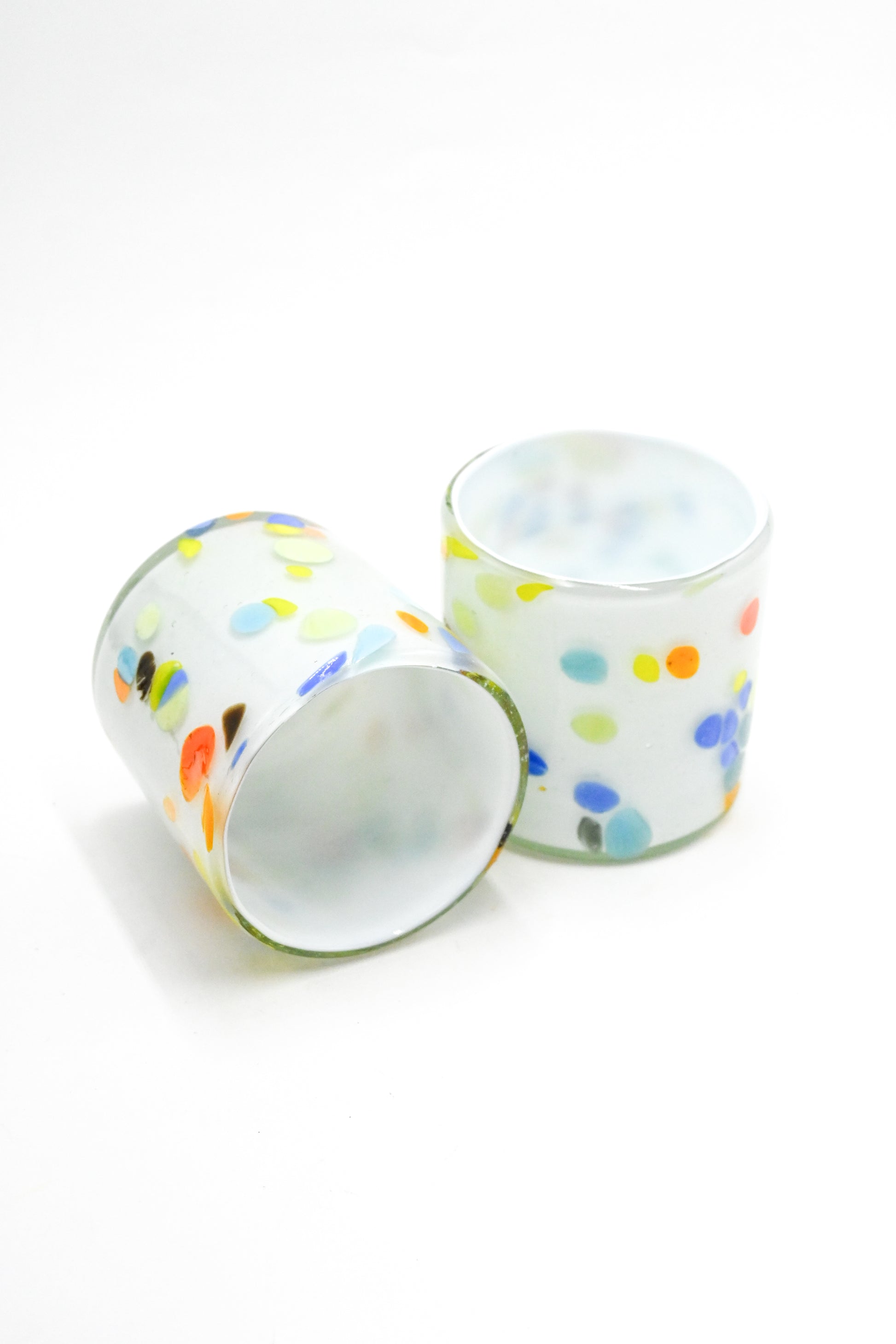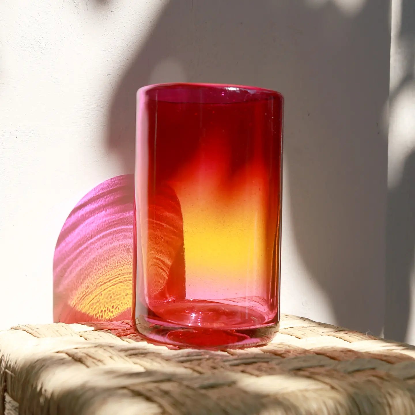 Hand blown glass tumbler made by a family run workshop in Guadalajara. As this is a handmade item, size can vary slightly, perfect for wine, cocktails or candles. Large is 3.25 inches tall and 3 inches in diameter Small is 2.5 inches tall and 3 inches in diameter All our glassware is lead free and FDA inspected. Made by hand in a family run workshop, vidrio soplado is very durable. LUZ Collection is indigenous made, owned and operated. Although LUZ Collection is not a certified fair trade business, we make every effort to adhere to fair trade practices.