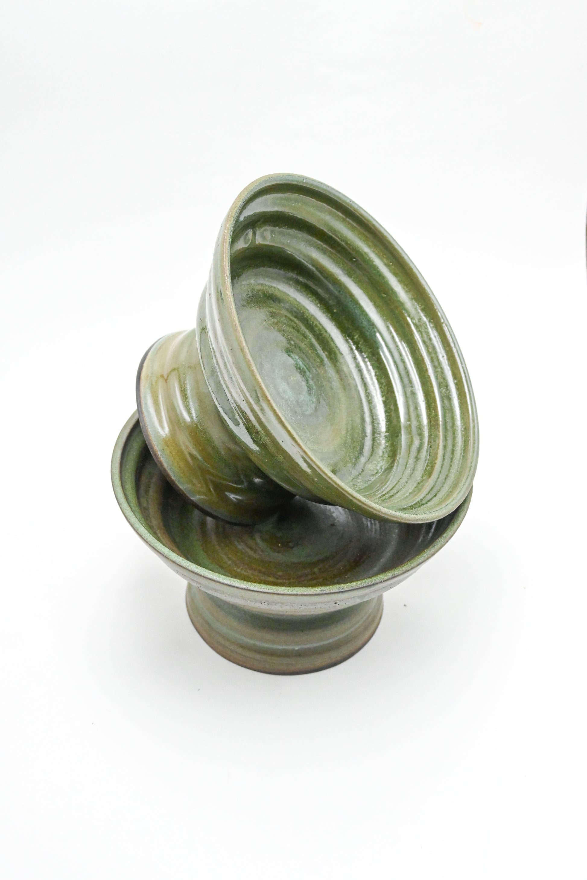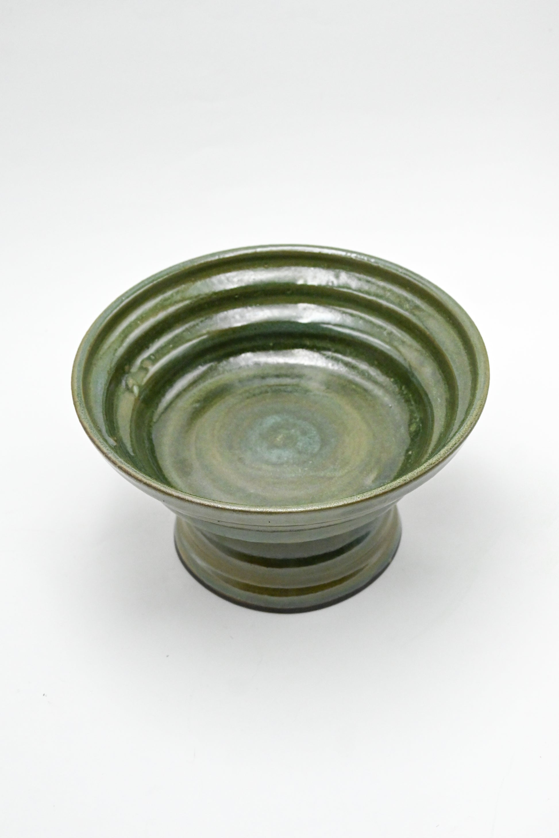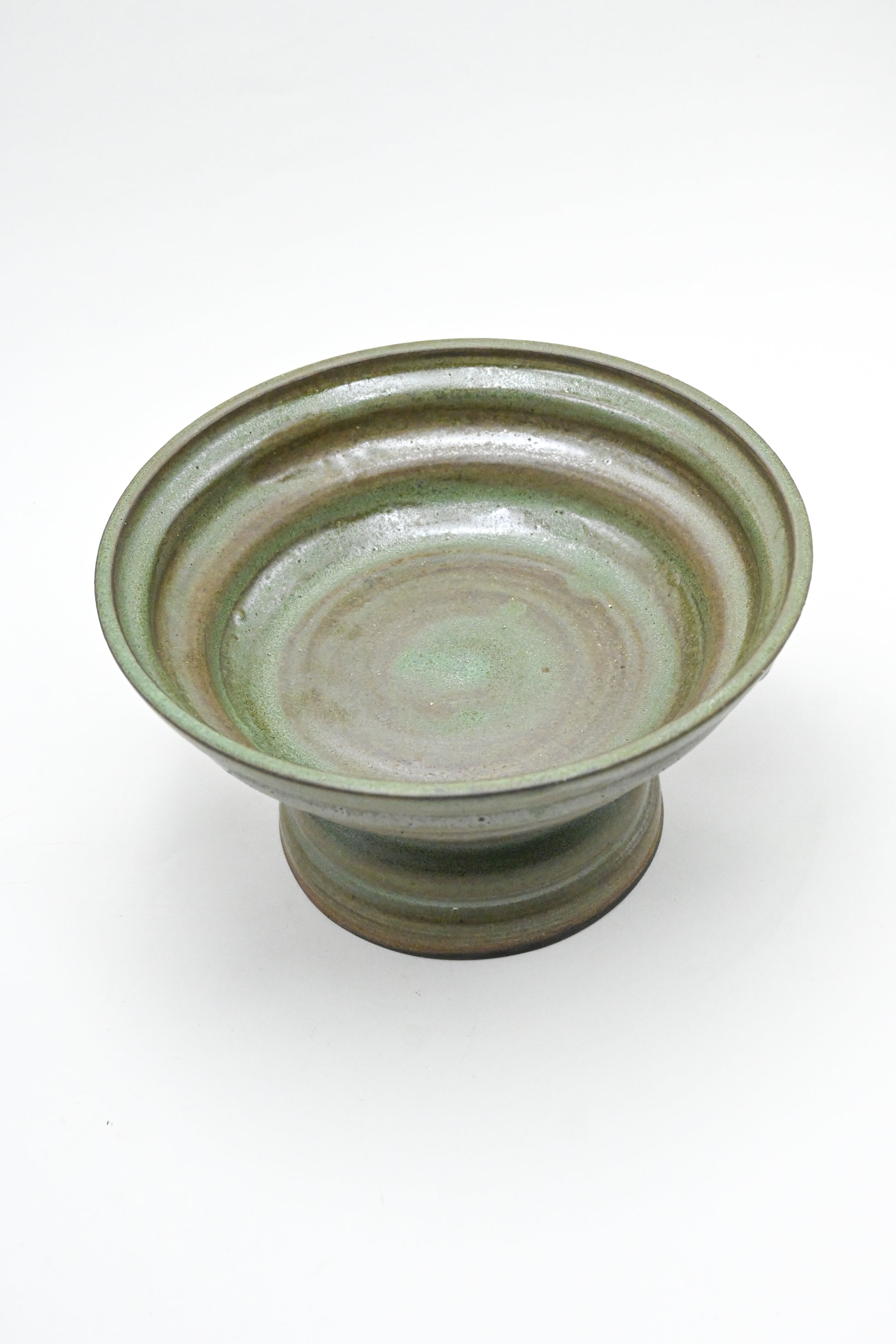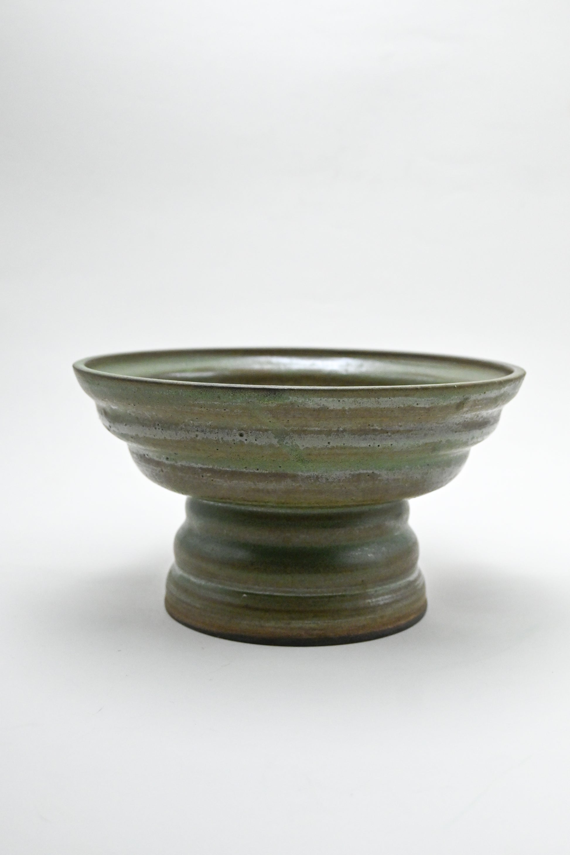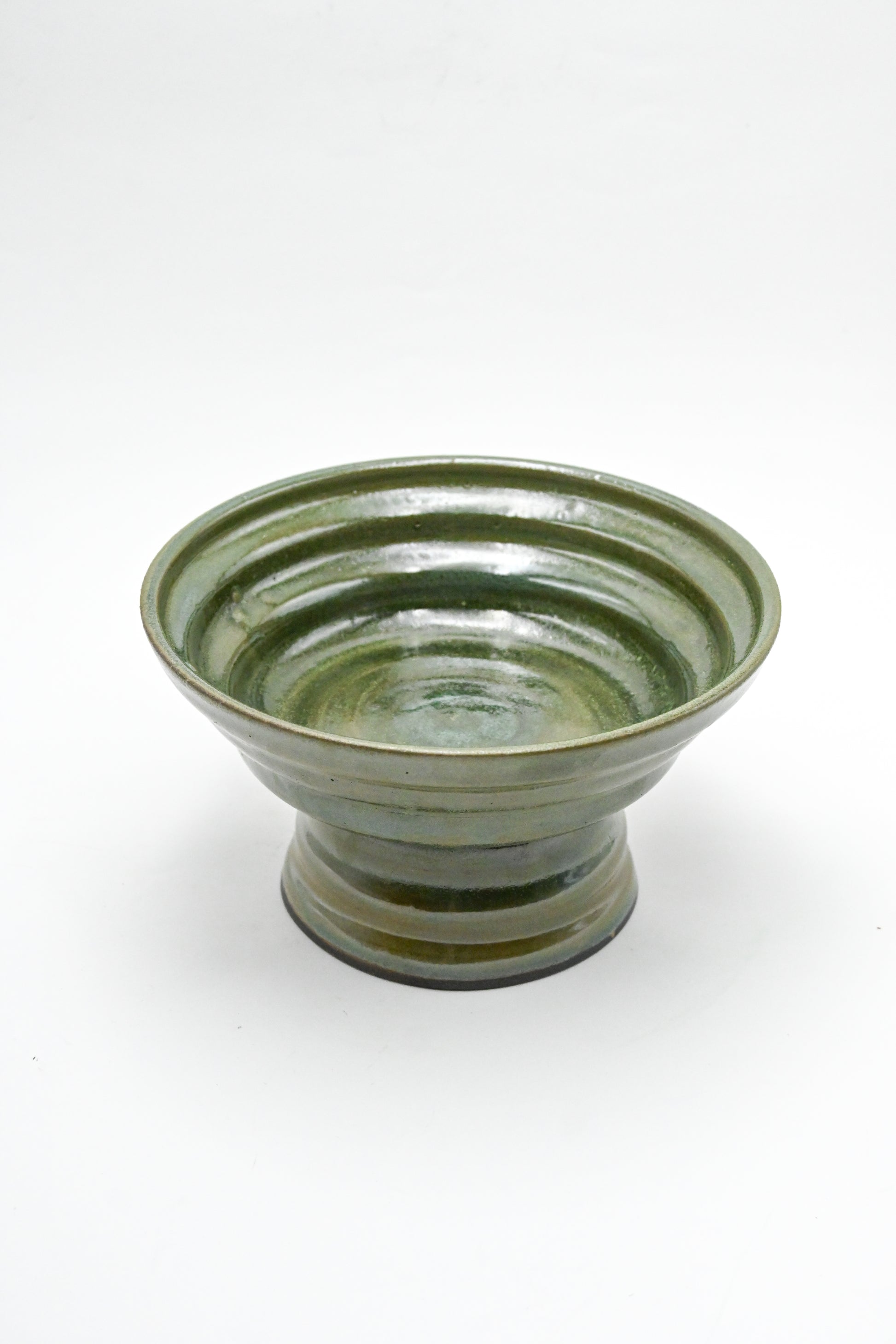 Wheel thrown stoneware bowl with hand painted glaze design. This pedestal bowl was designed with ikebana florals in mind, but is also perfect for a fruit bowl or centerpiece.