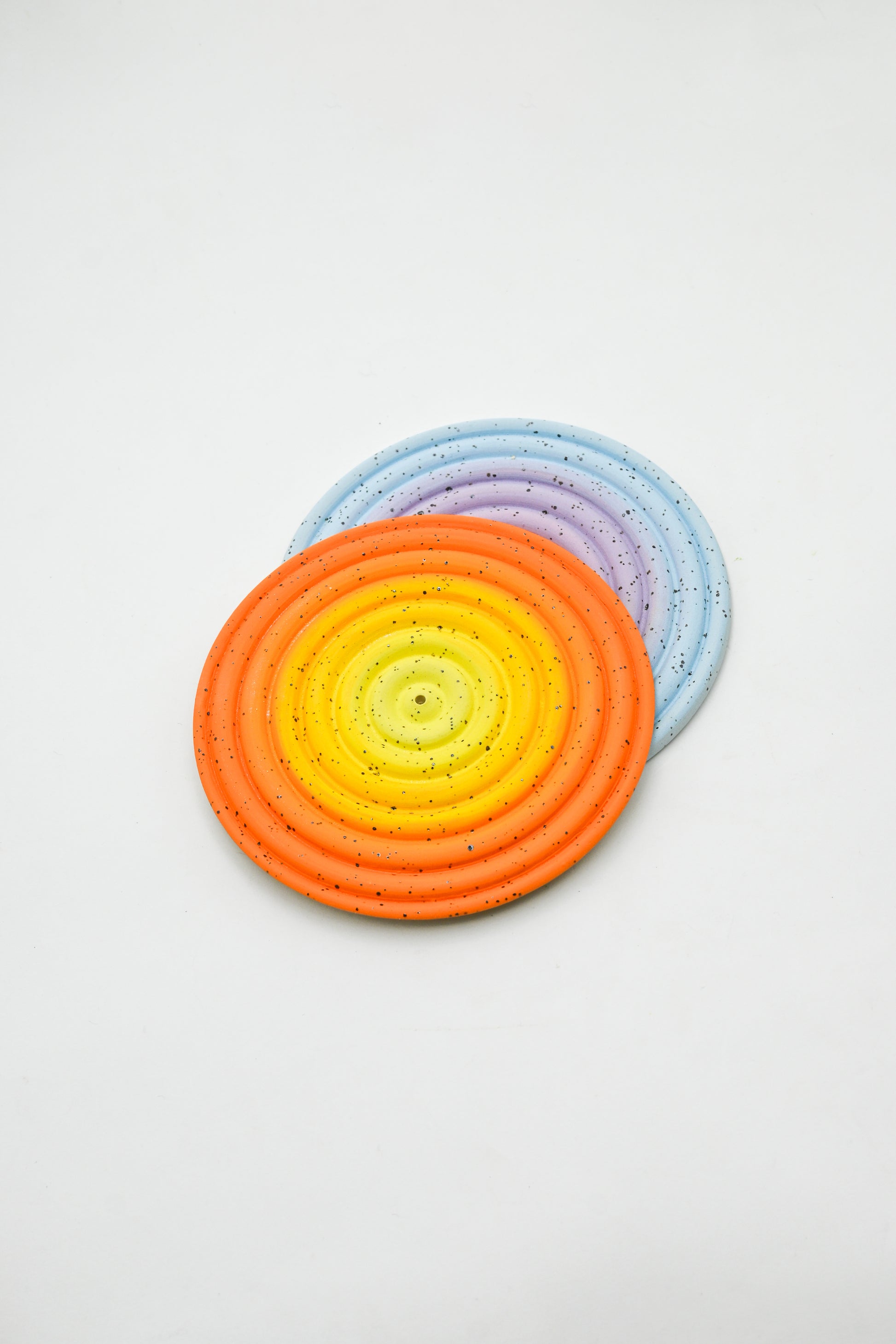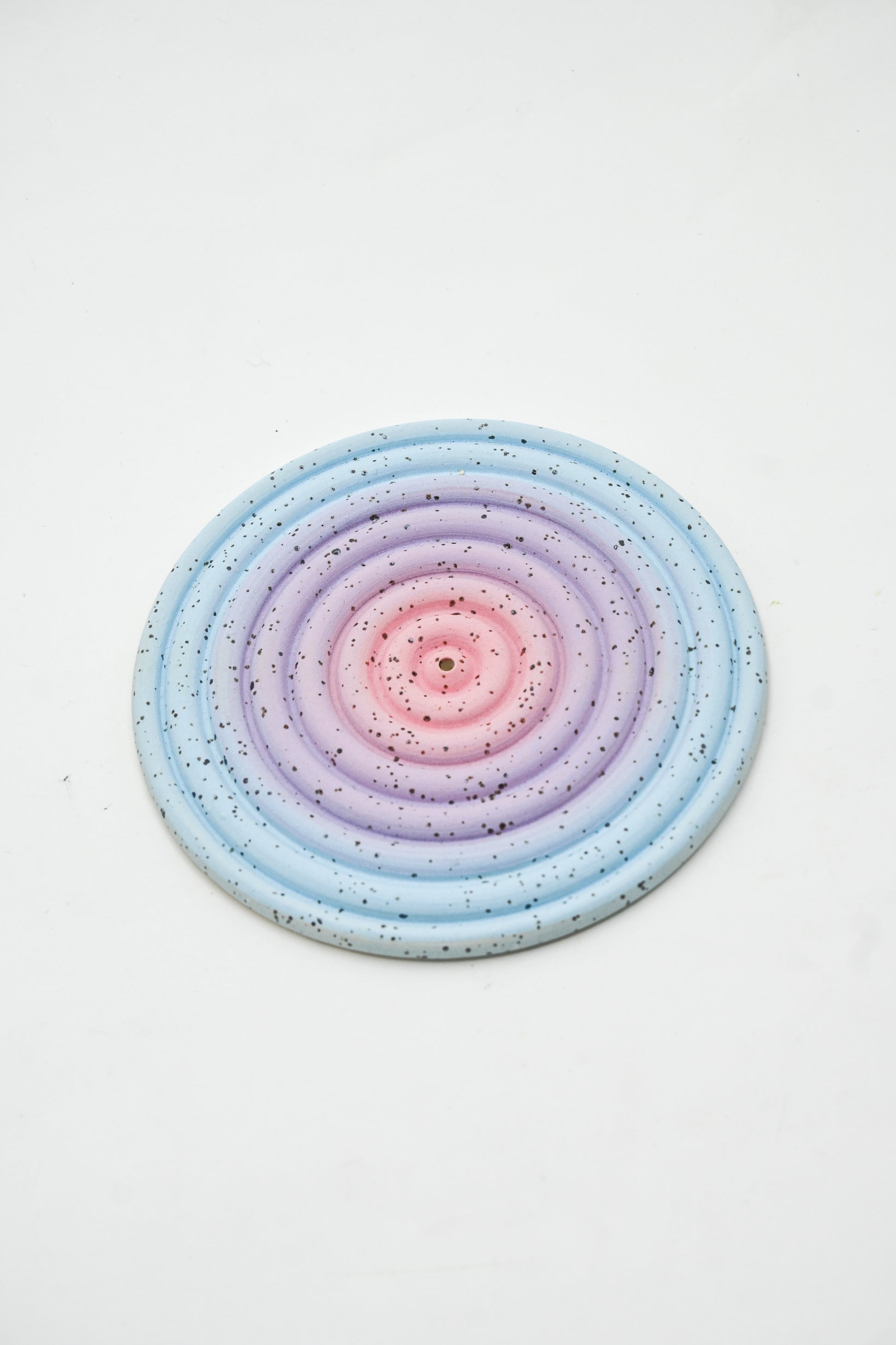 Handmade stoneware incense holder with hand painted glaze design.