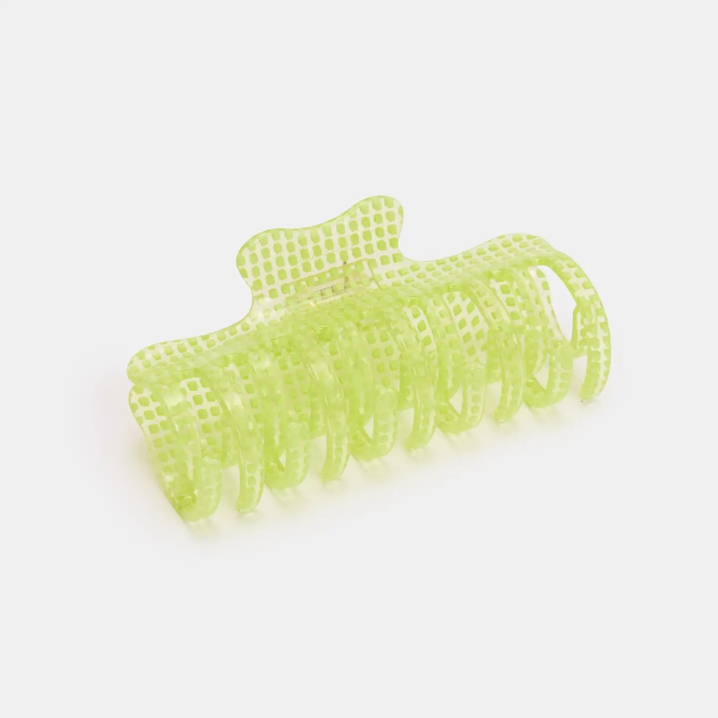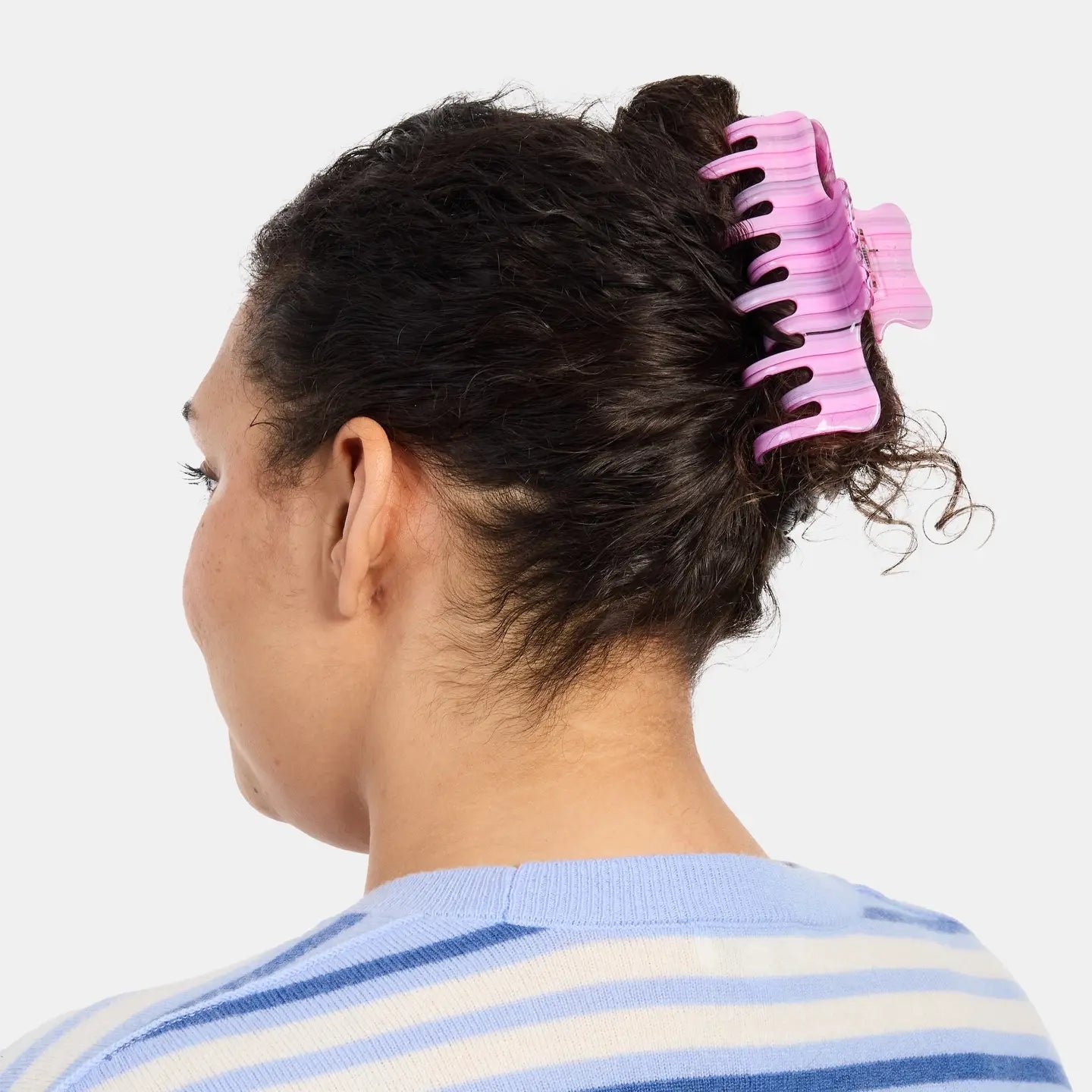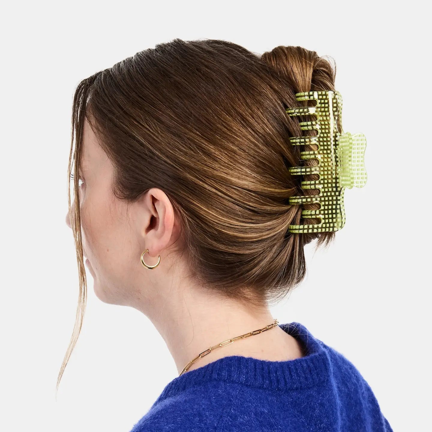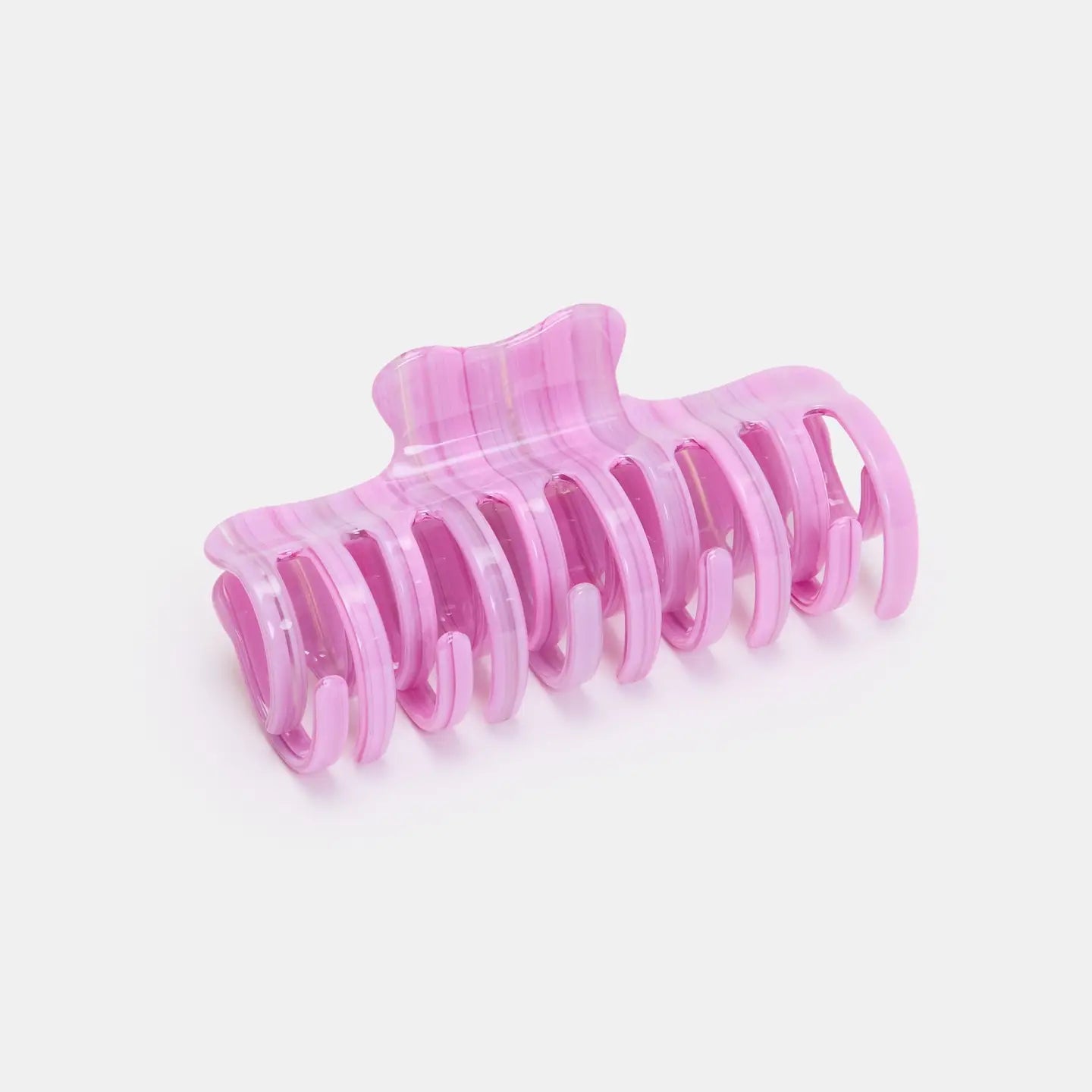 This claw has a double row of teeth for an extra secure hold. Works with all hair types and great for fine or slippery hair. Made from high quality acetate; a durable, plant based bio-plastic. Metal hardware is lead and nickel-free. Slight variations will appear with pattern, color and form due to the handmade nature of the product.