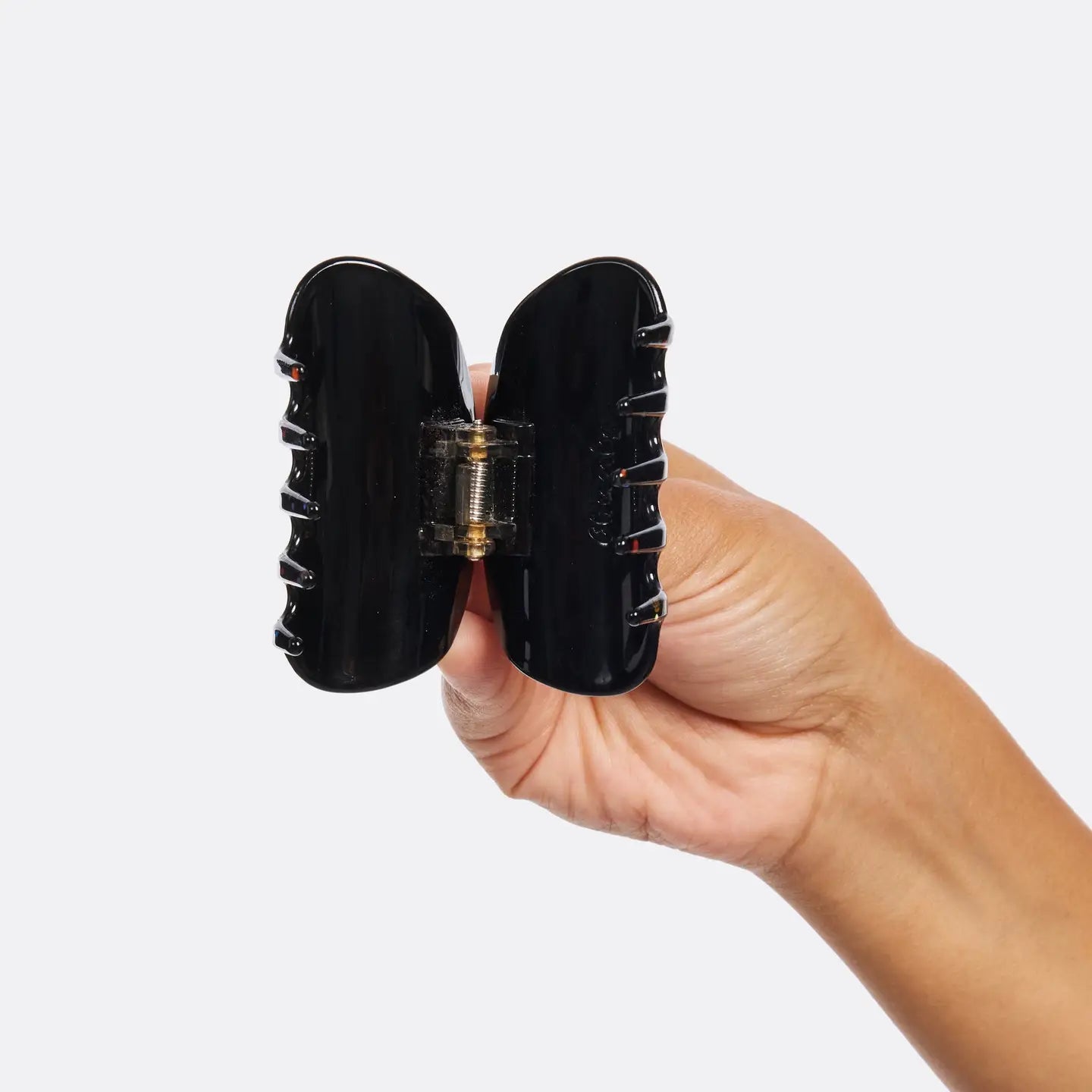 This small-ish-sized hair claw is recommended for all hair types and textures. Perfect for fine hair buns and thicker hair half-updo's!