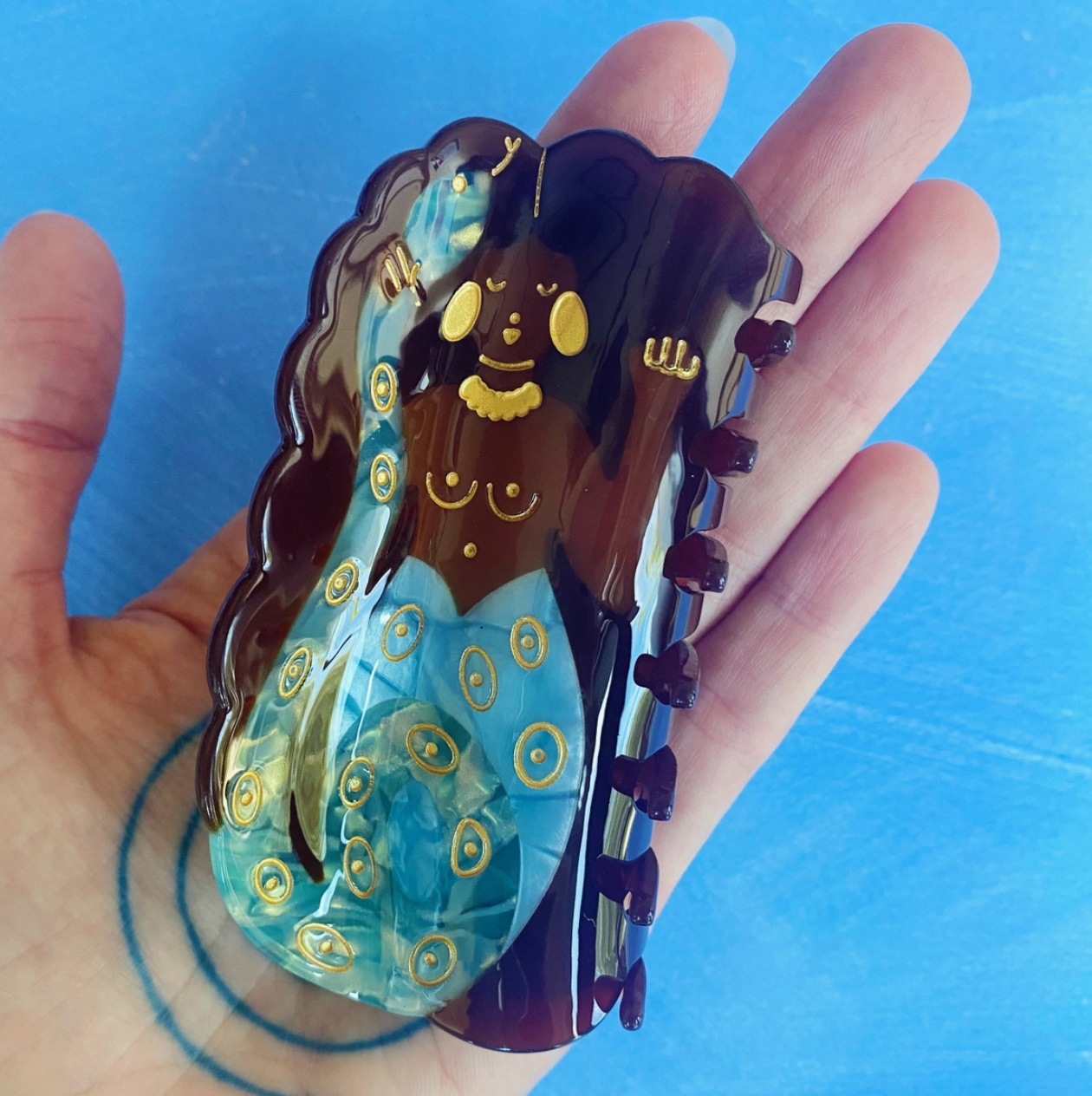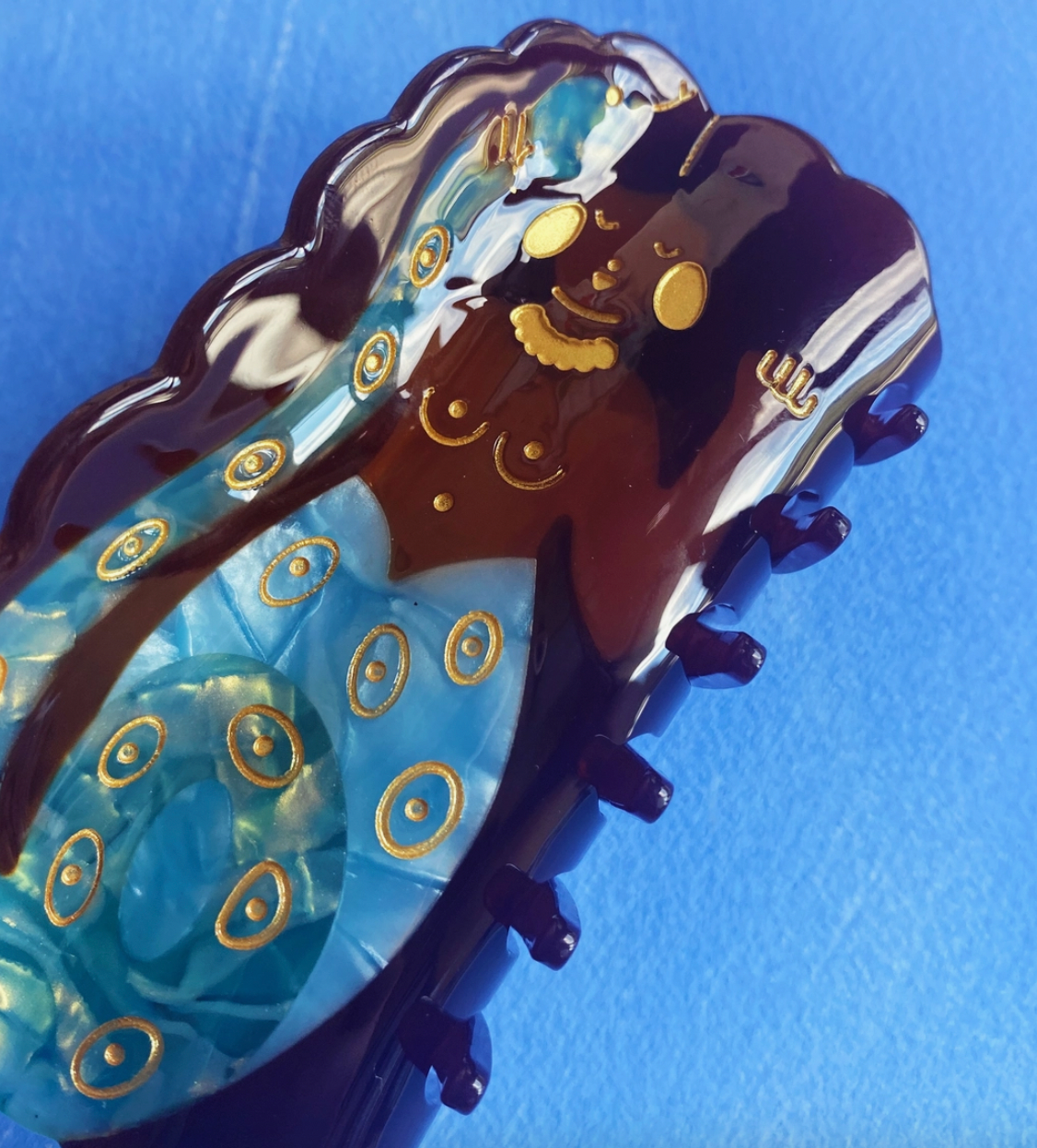 This hair accessory presents Artist Lisa Junius’ best selling cosmic woman design in a new way!