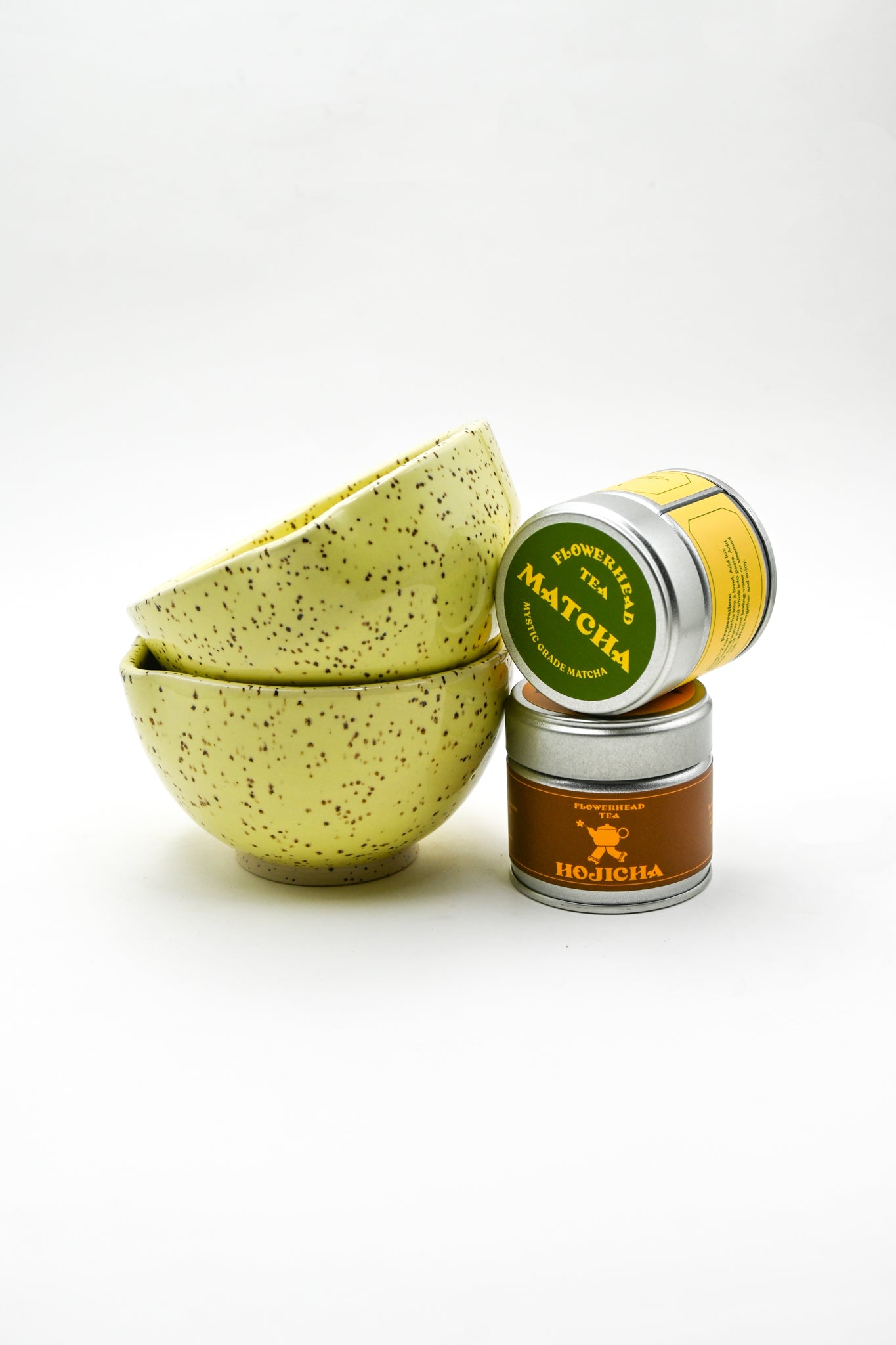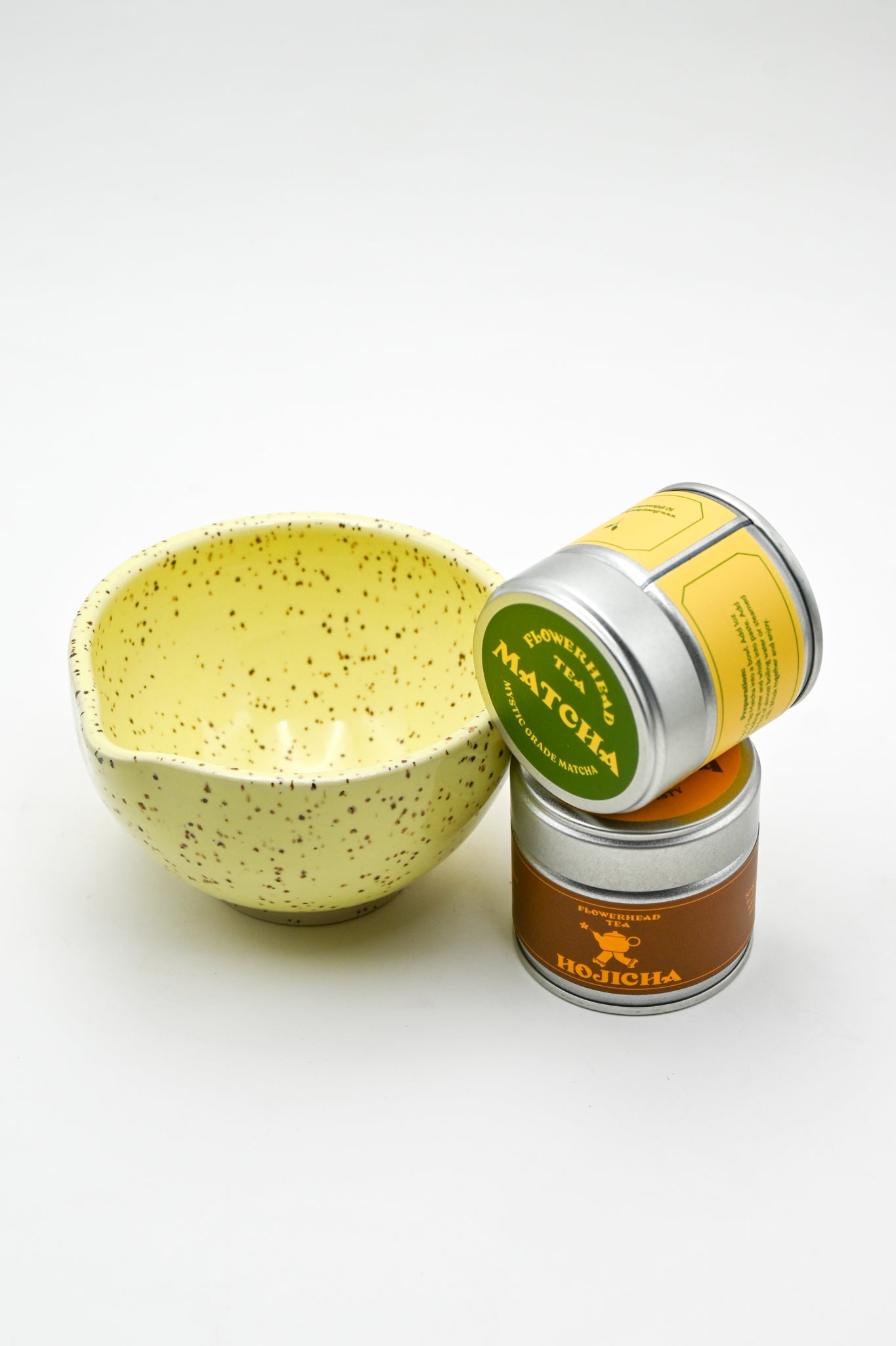 Wheel thrown stoneware tea bowl with hand painted glaze.