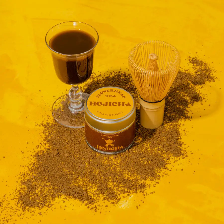 Hojicha Tin: Our holy hojicha powder is roasty and toasty perfection. This unique roasted green tea has notes of cocoa and caramel, and satisfies tea drinkers, coffee lovers, and even those who prefer a simple hot chocolate. Hojicha is prepared by roasting mature green tea leaves at high temperatures after being steamed. This gives it a special roasted aroma with a nutty and chocolatey sweet taste. 25 grams per tin
