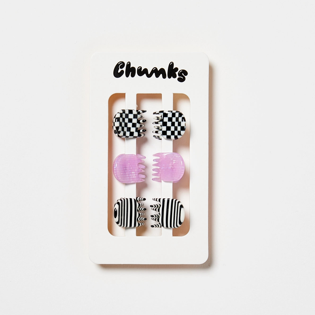 Six micro (but mighty!) claws, perfect for styling all hair types and textures. Made from high quality acetate; a durable, plant based bio-plastic. Metal hardware is lead and nickel-free. Slight variations will appear with pattern, color and form due to the handmade nature of the product. Measures approx 0.75"L x 0.75"H x 0.75"D