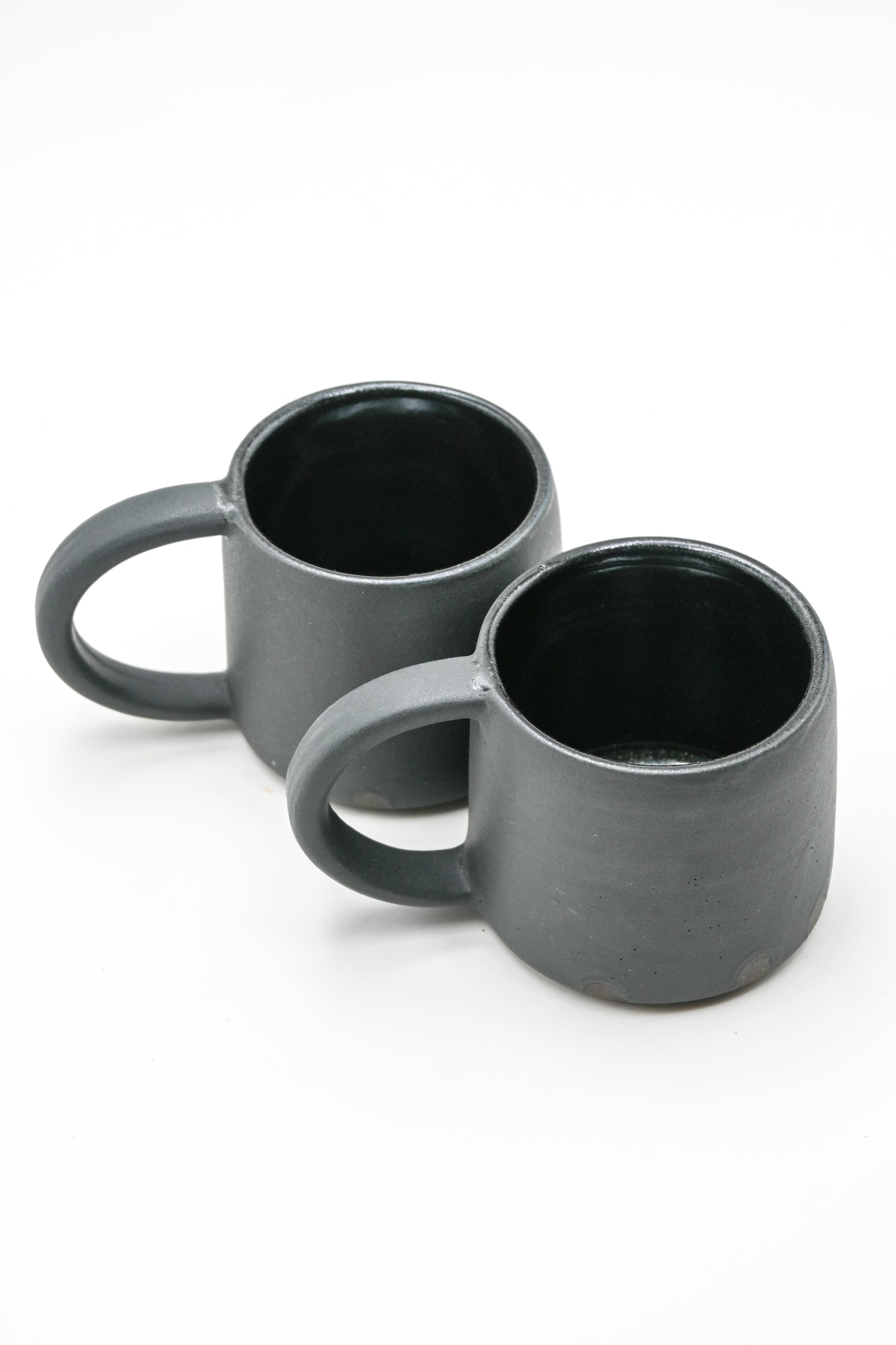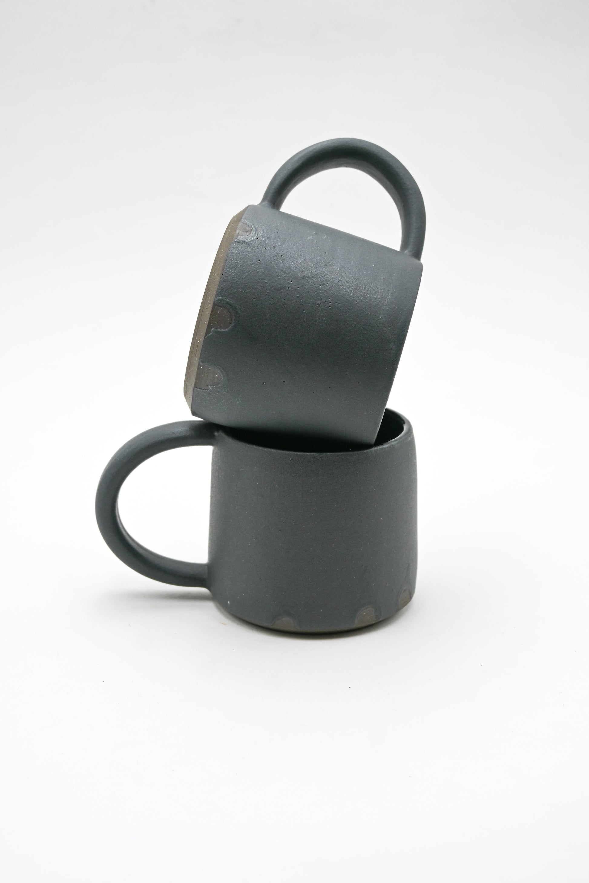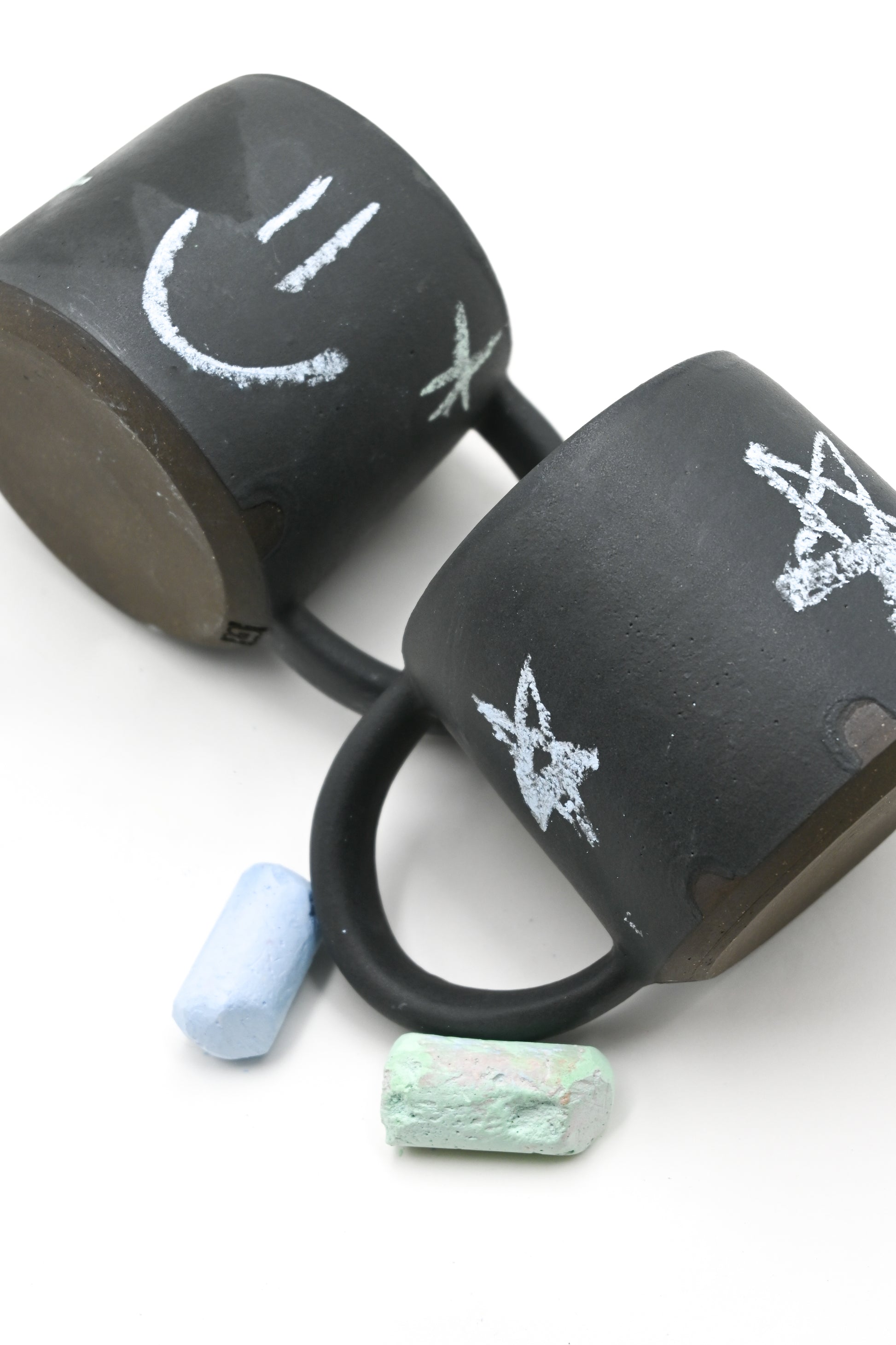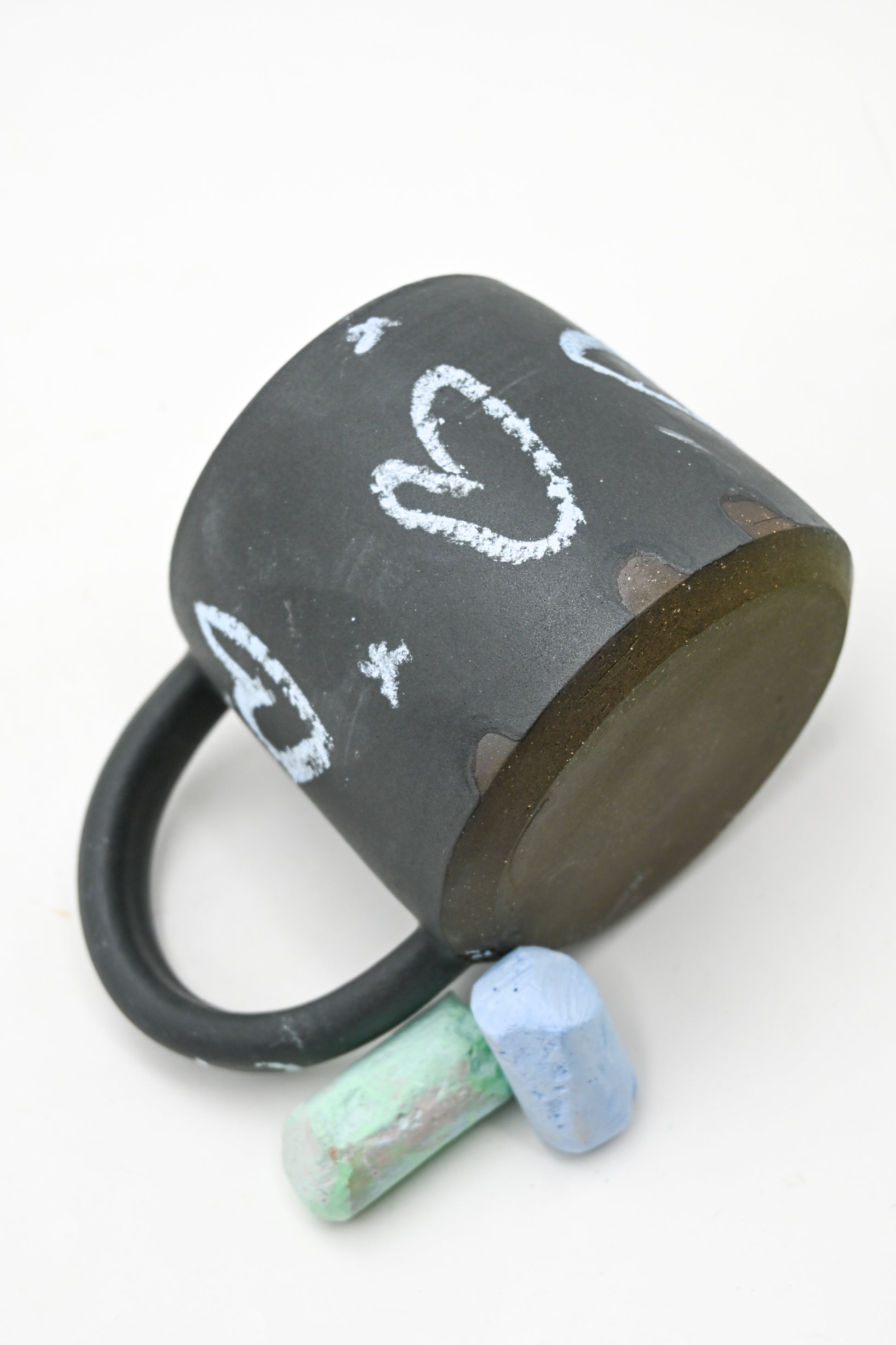 Wheel thrown stoneware mug with hand painted glaze design. Food safe chalkboard glaze is erasable.