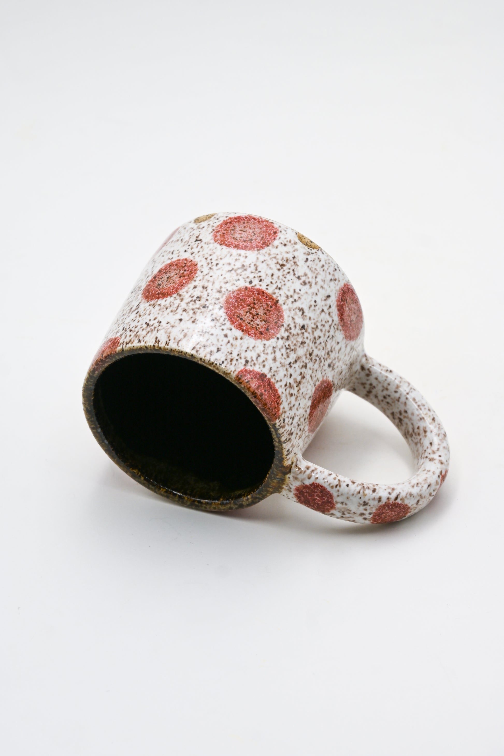 Wheel thrown stoneware mug with hand painted glaze design. Food safe.