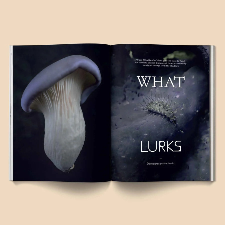 Like the life-filled microcosm of a richly decaying stump, the sequel to our best-selling magazine hosts an eclectic variety of stories illuminating the ways mushrooms subvert and expand our understanding of the world around us. In Mushroom People 2, we hear from astromycologists, academics, architects, pharmacists, foragers, fashion designers, home cooks, shopkeepers, composers, and poets all inspired by the many radical ways of being fungi embody.