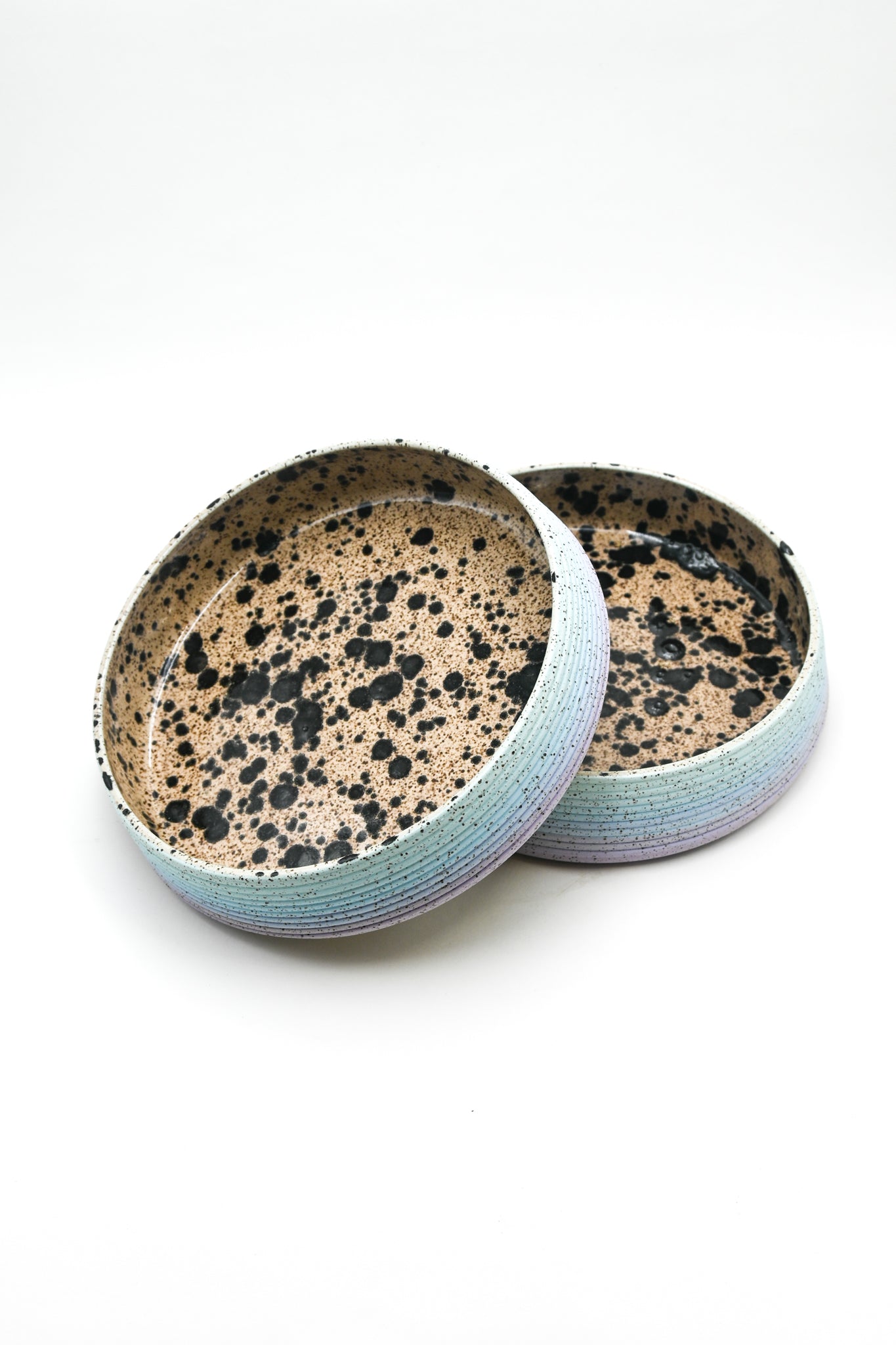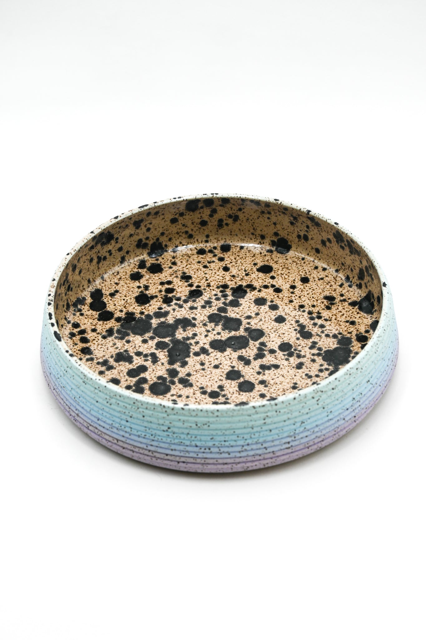 Wheel thrown stoneware plate bowl with hand painted glaze design. Food safe.