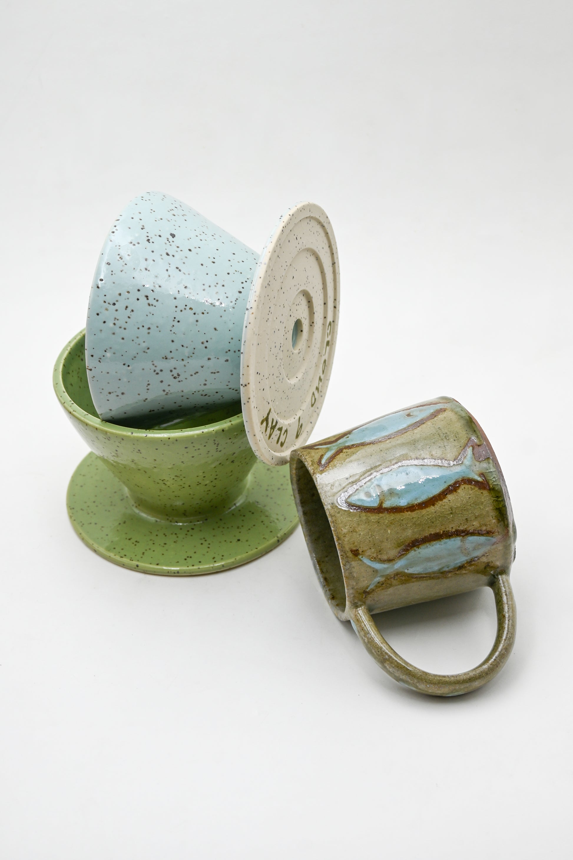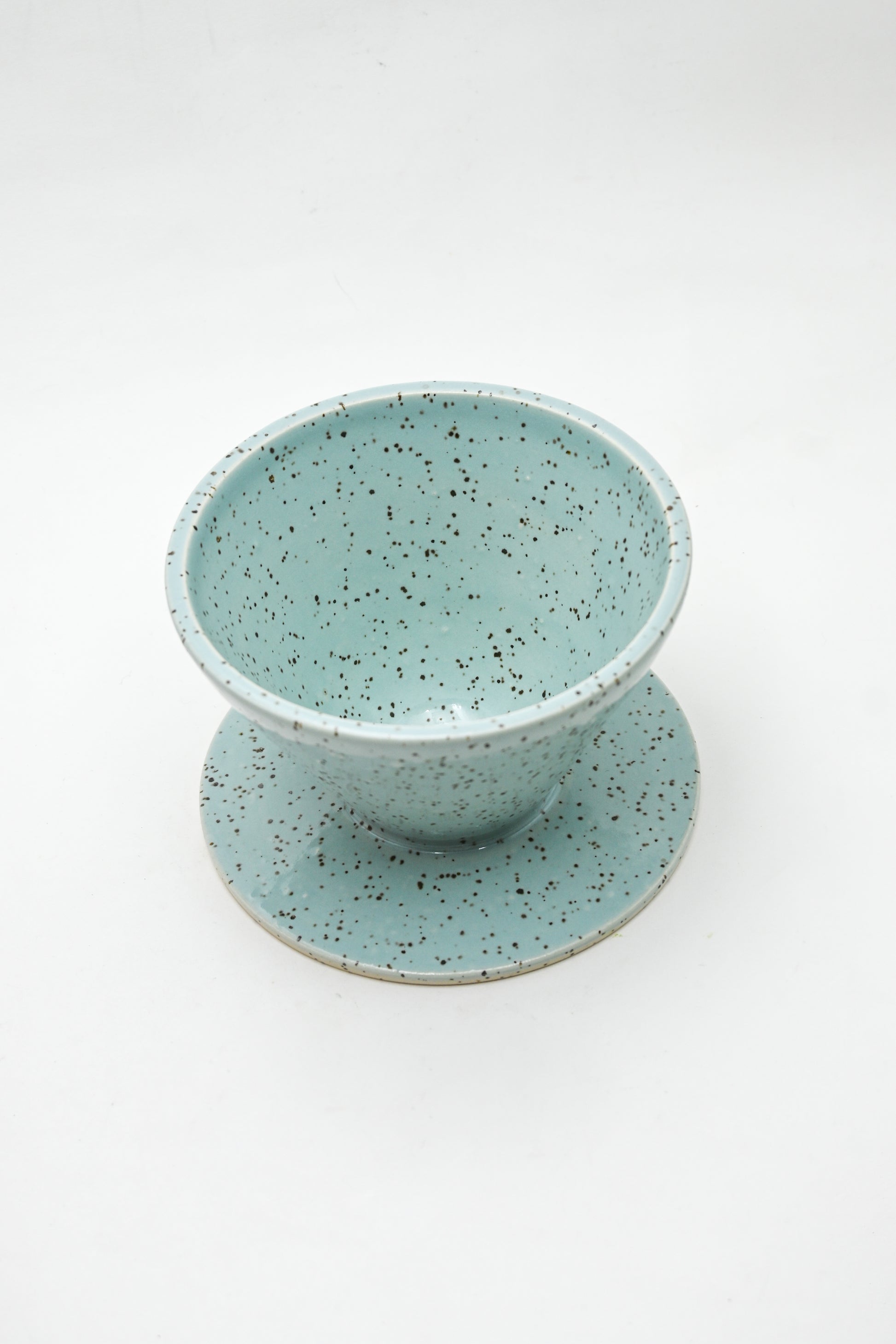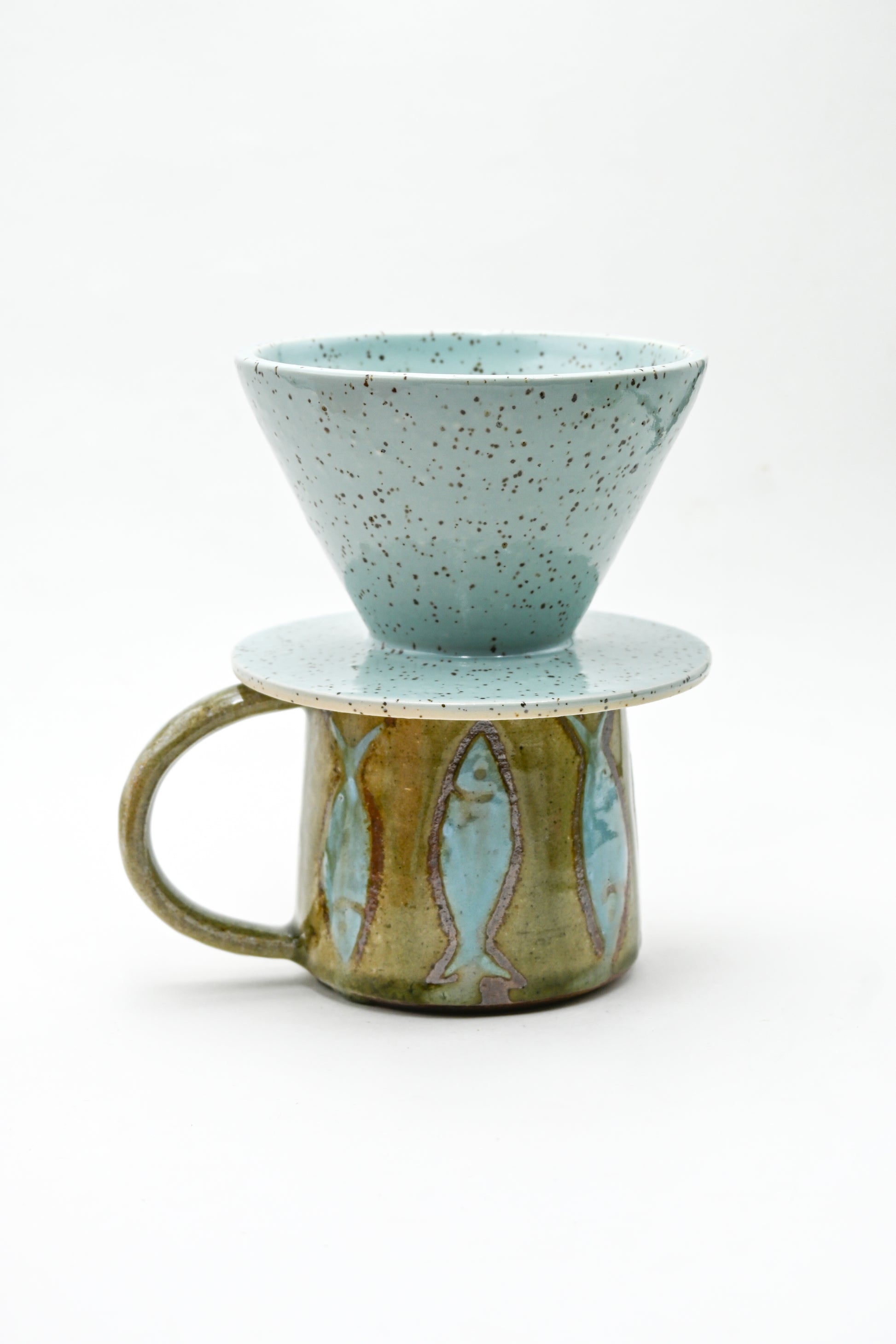 Wheel thrown stoneware pour over dripper with hand painted glaze. Food safe.