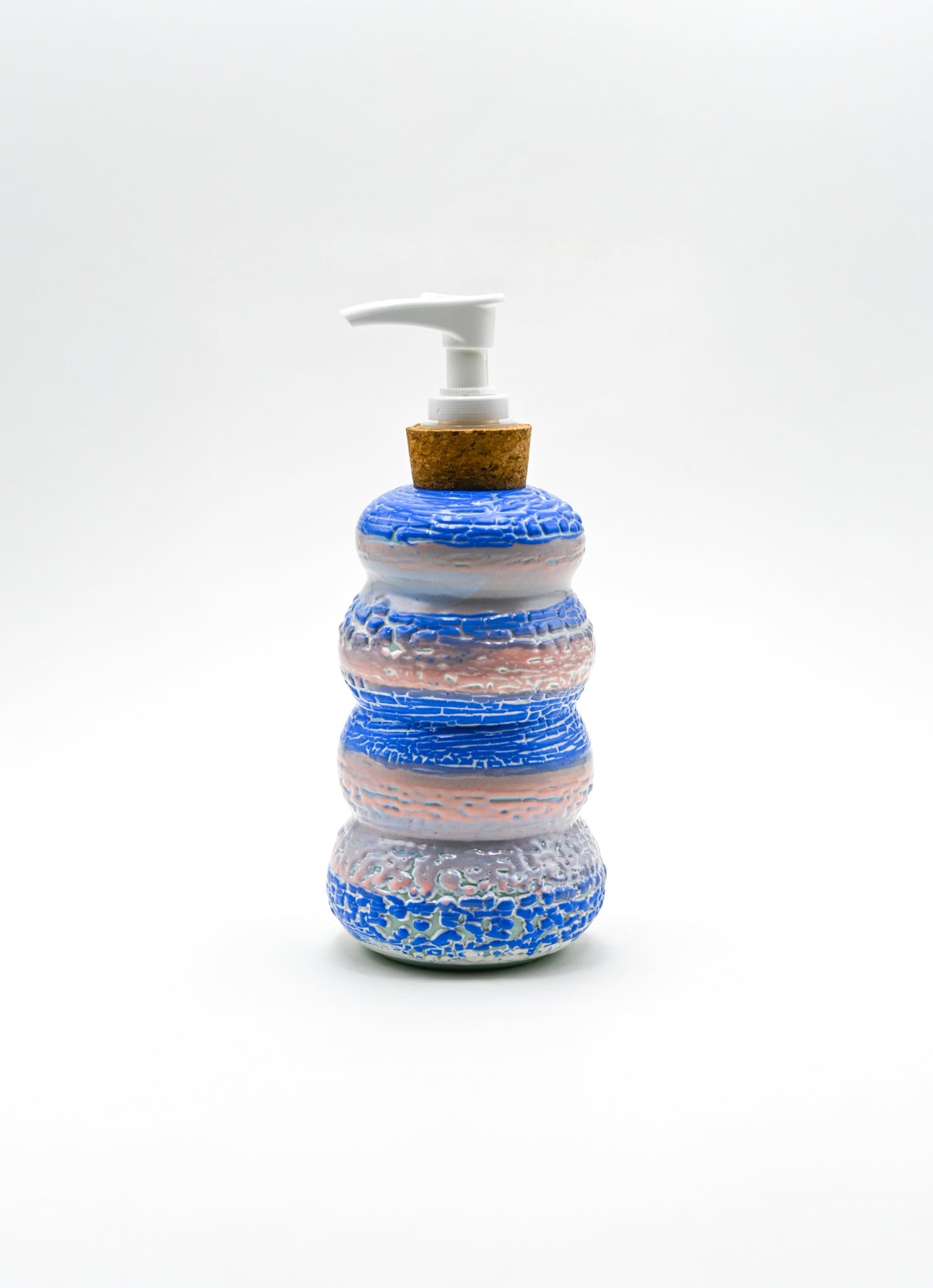 Wheel thrown blue porcelain liquid soap dispenser with hand painted glaze.