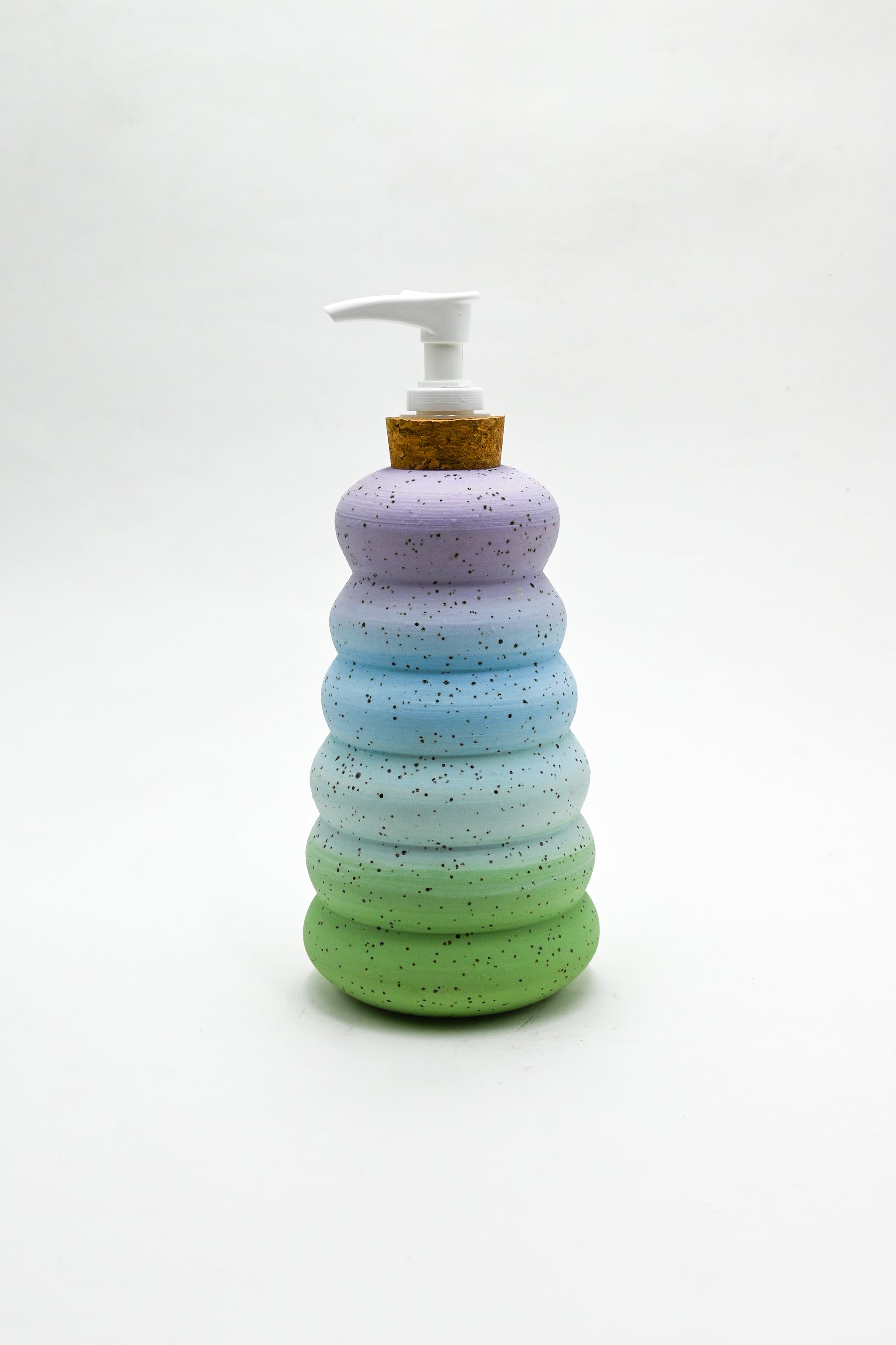 Wheel thrown stoneware soap dispenser with hand painted glaze design. Soap pump included, this vessel can also be used as a small vase!