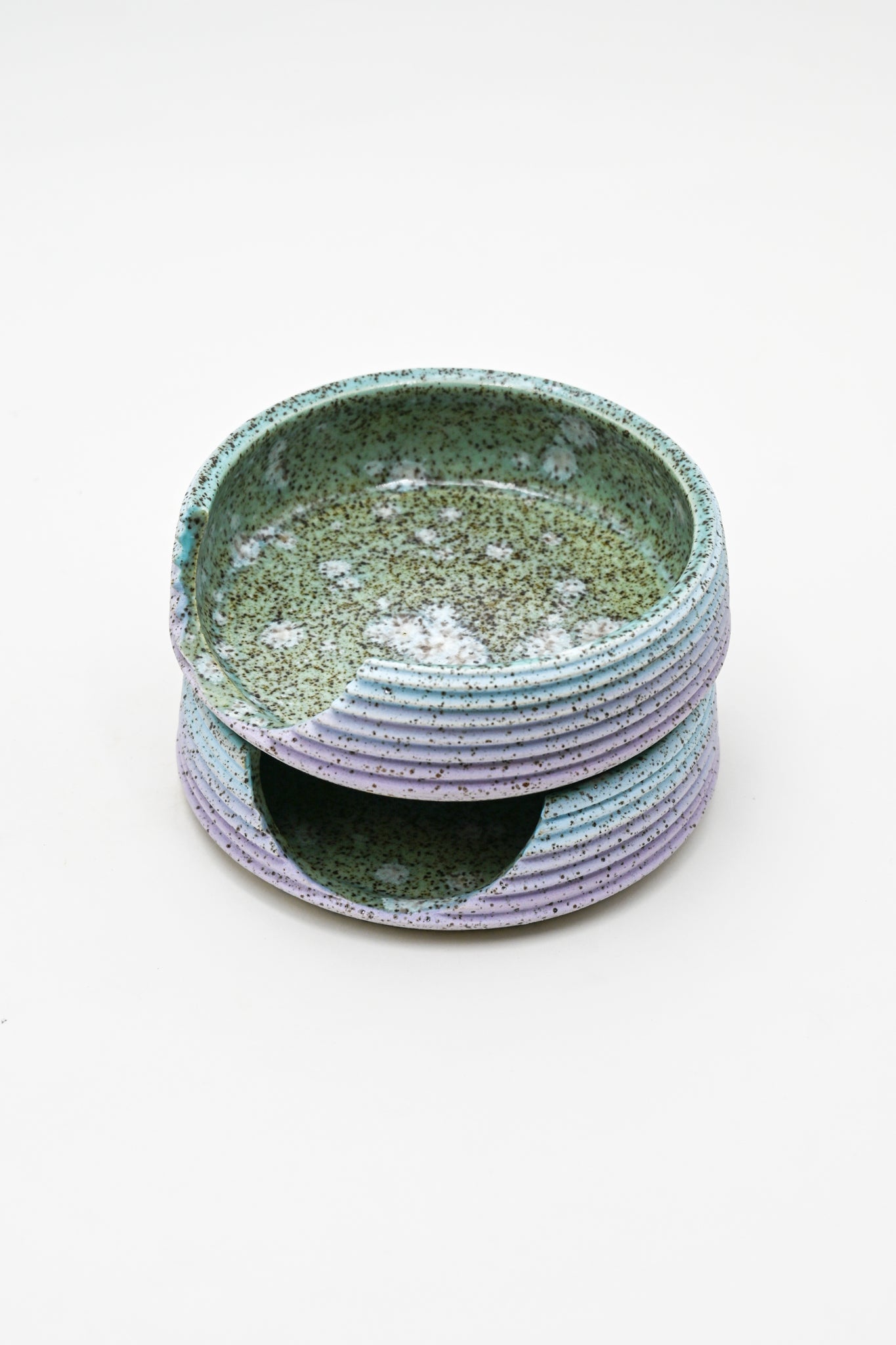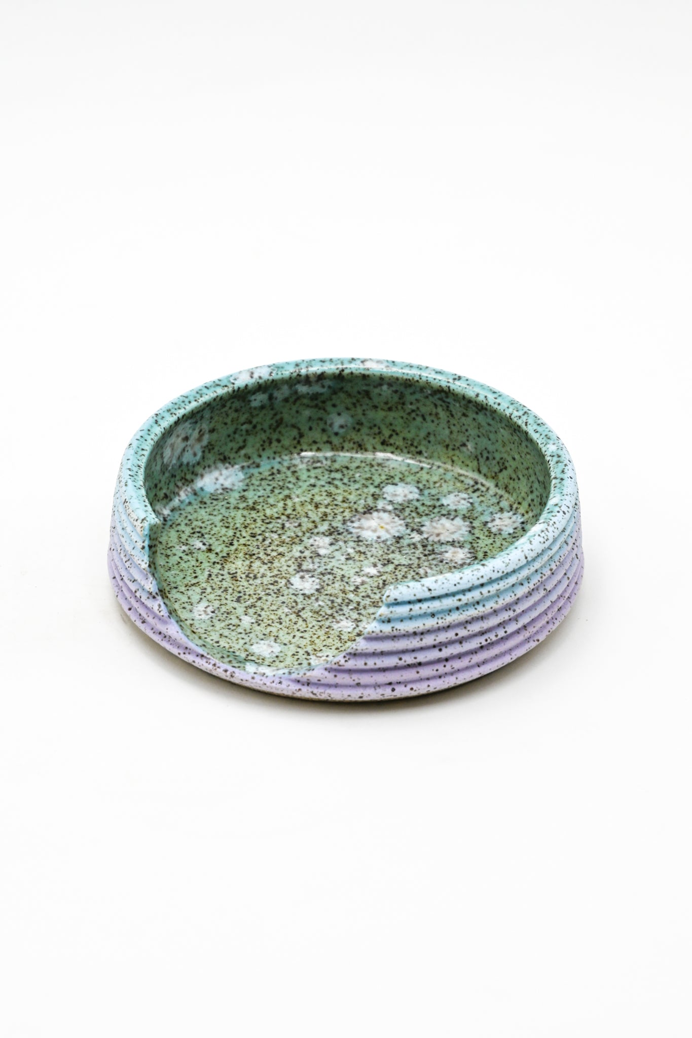 Wheel thrown stoneware spoon rest with hand painted glaze design.