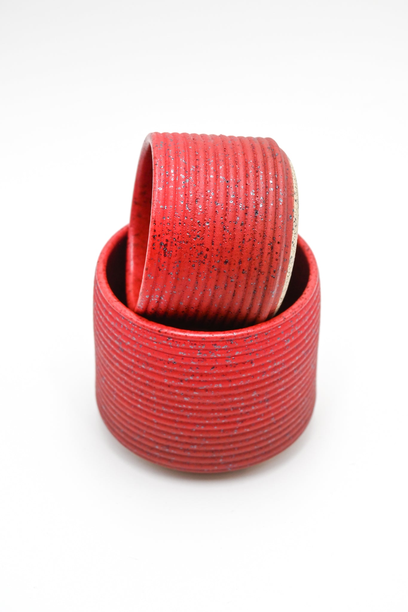 Wheel thrown stoneware tumbler with hand painted glaze. Food safe.