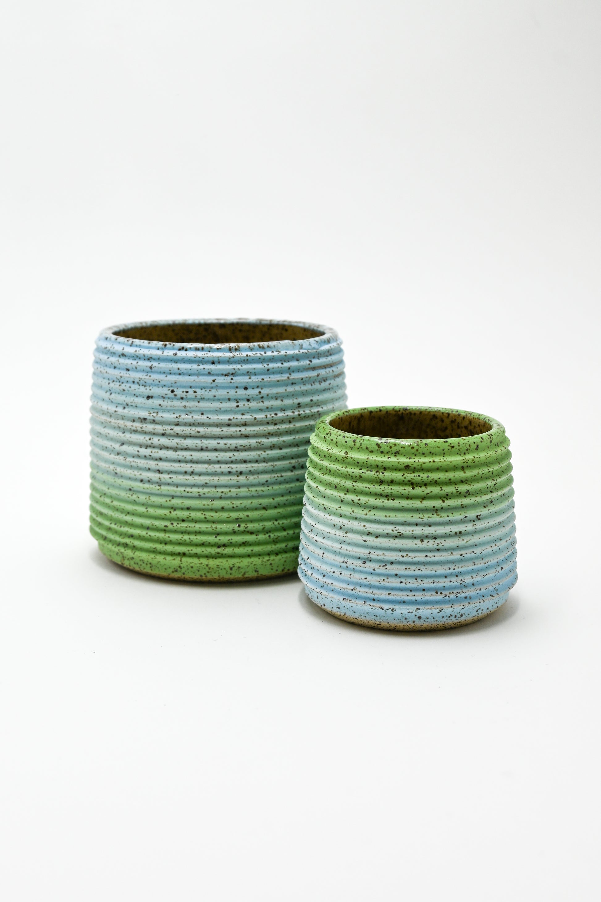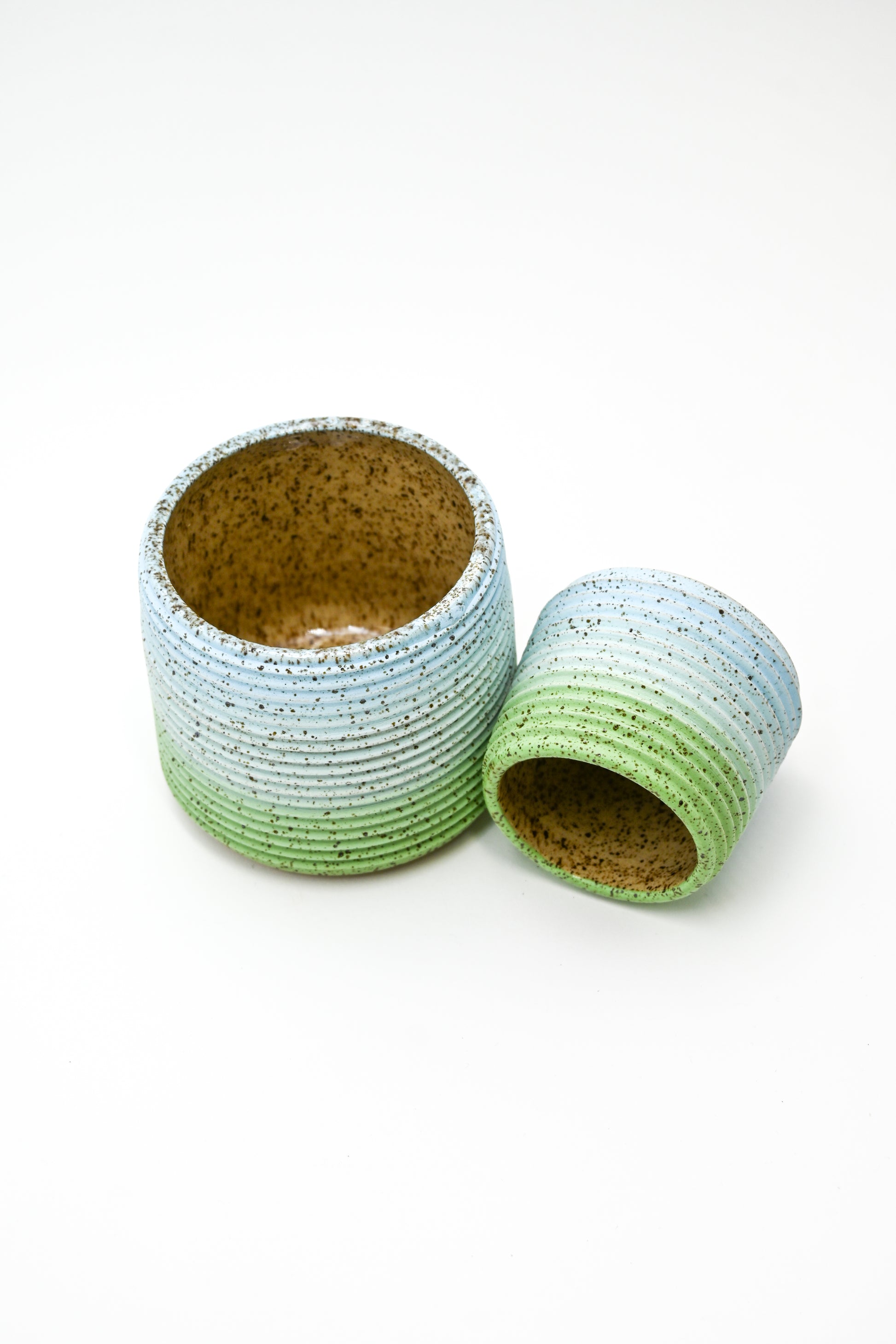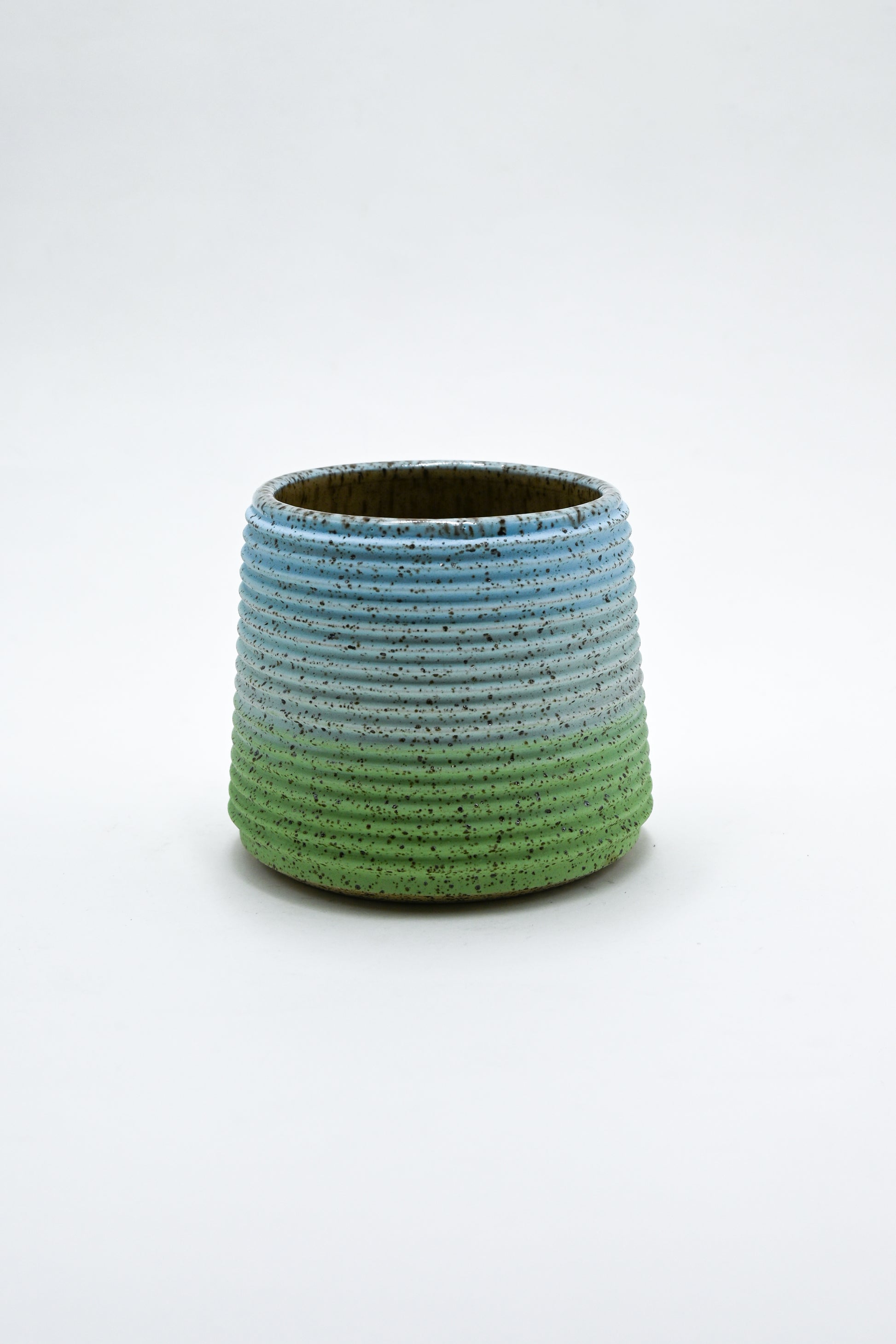 Wheel thrown stoneware tumbler with hand painted glaze. Food safe.