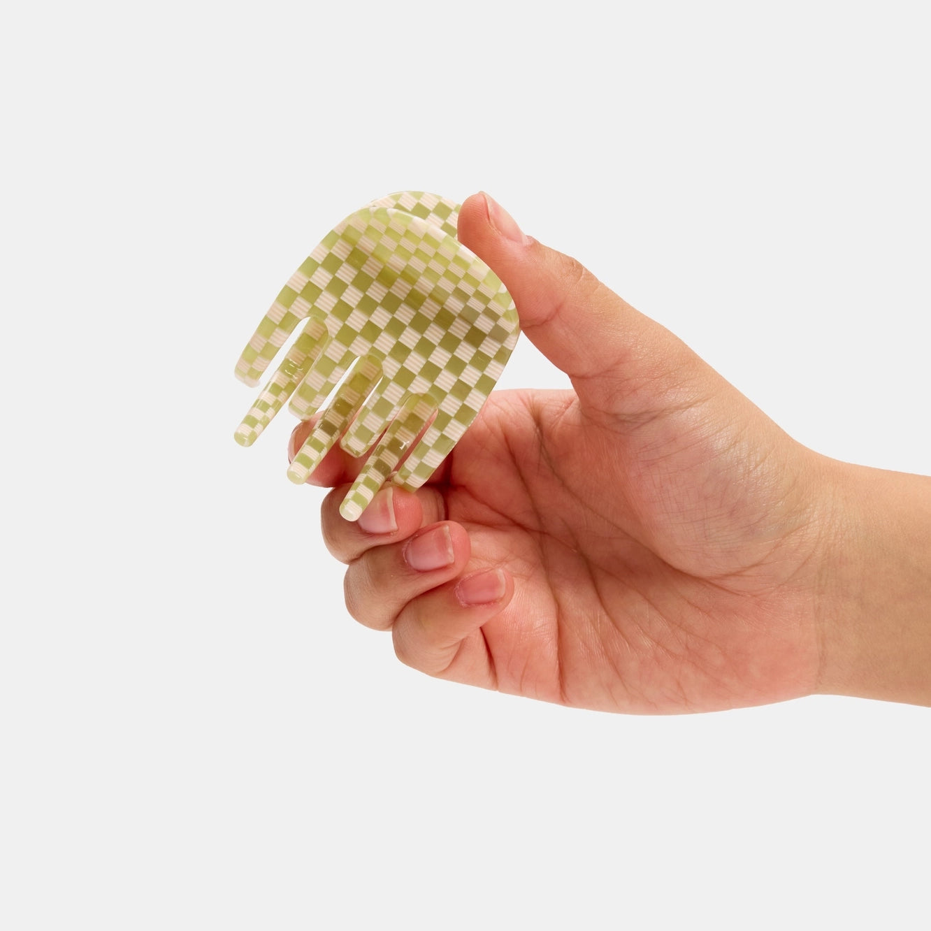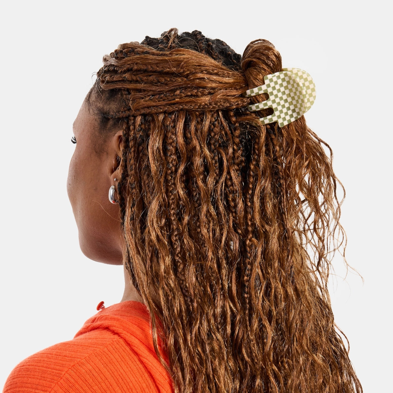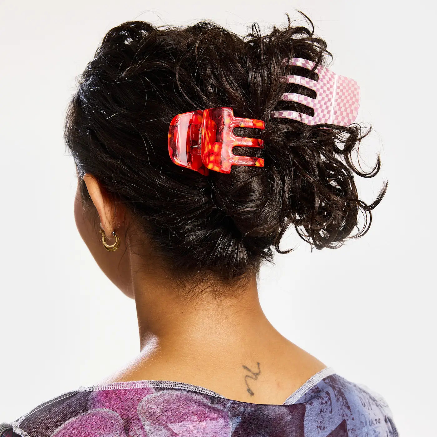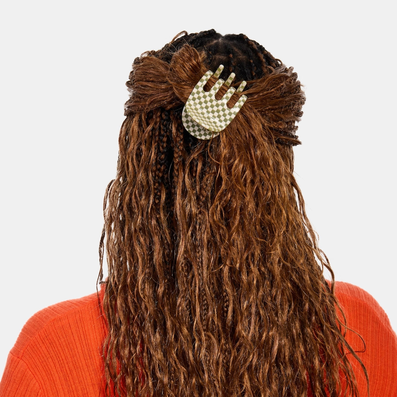 This medium sized claw is uniquely perfect for curly, textured, medium to thick hair. Large teeth give a gentle but firm hold, without crushing curls.