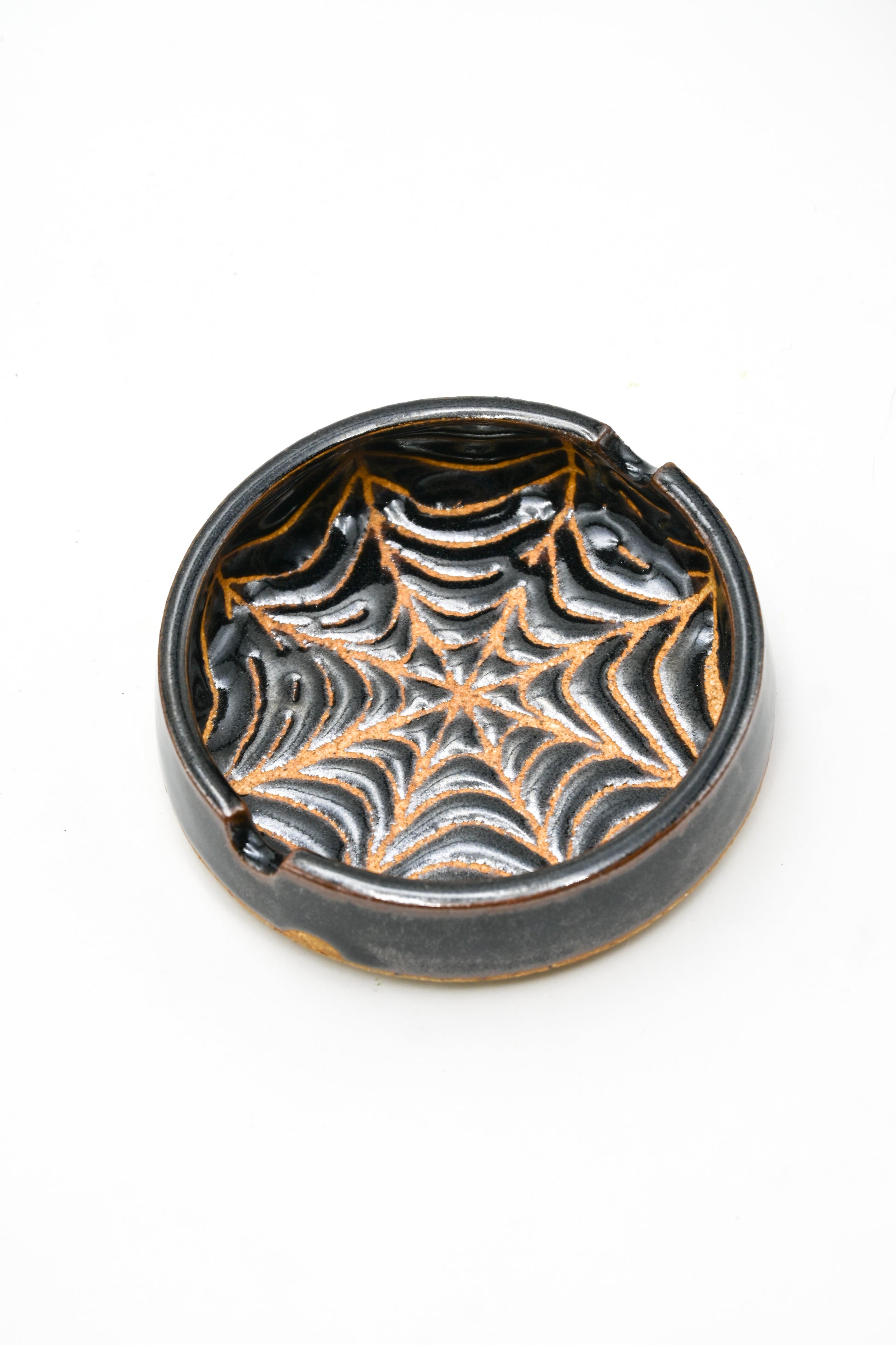 Wheel thrown ash tray with hand painted glaze design. Wood fired with oak and pine for 24 hours, one of a kind piece. For the longevity of the piece it is recommended to hand wash with care.