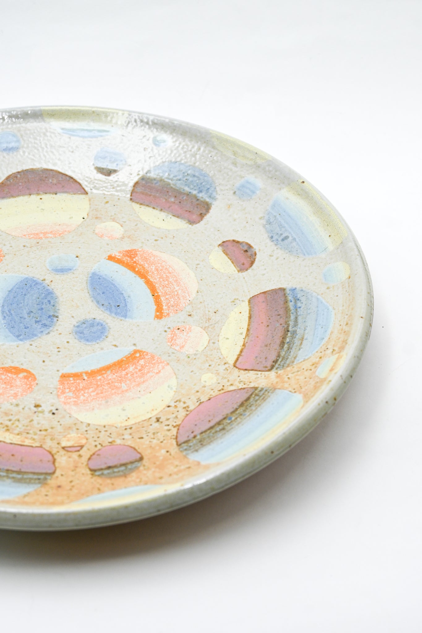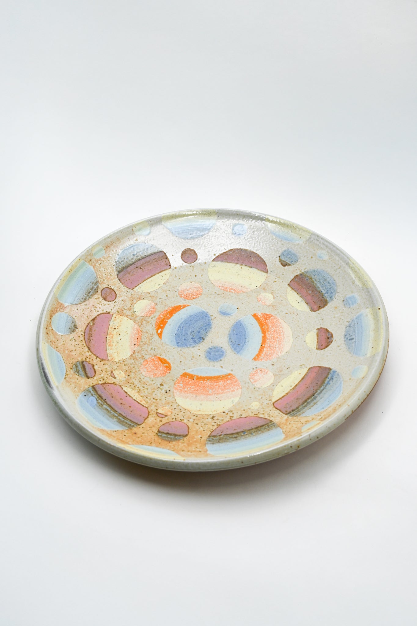 Wheel thrown porcelain dinner plate with handpainted glaze design.