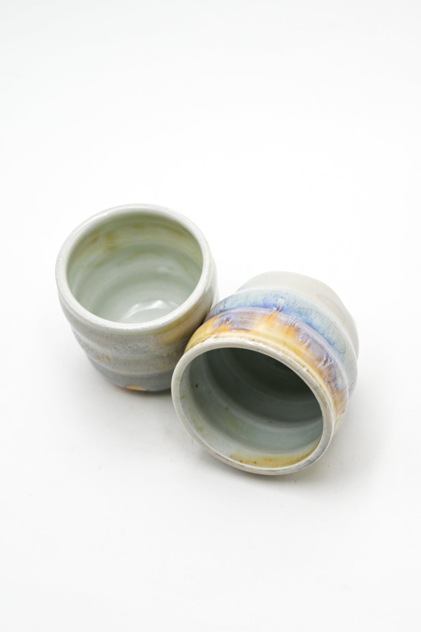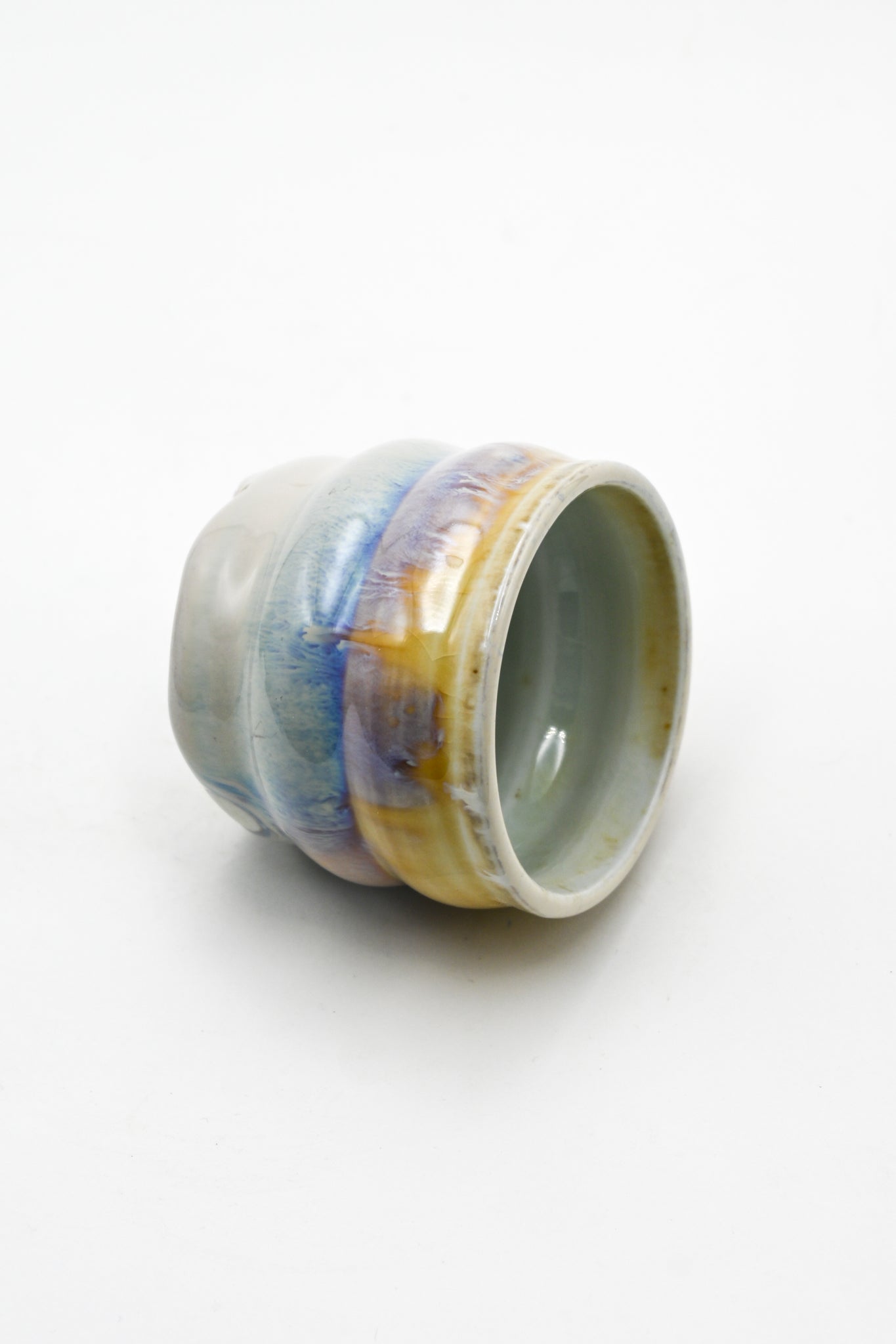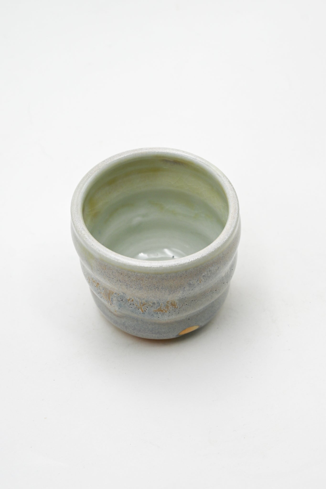 Wheel thrown stoneware cup with hand painted glaze. Food safe.