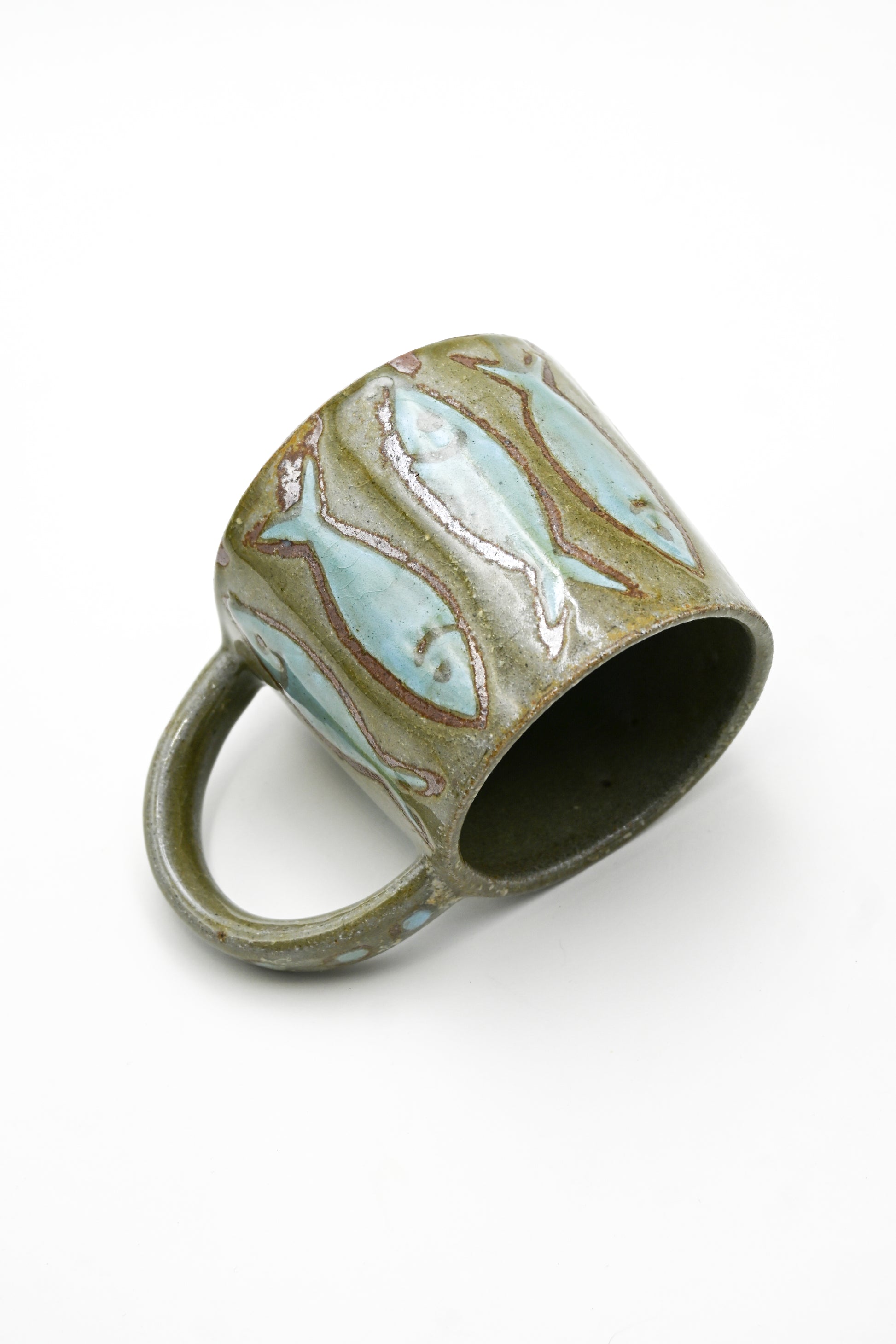 Wheel thrown stoneware mug with hand painted glaze design. Wood fired with oak and pine for 24 hours, one of a kind piece. For the longevity of the piece it is recommended to hand wash with care.