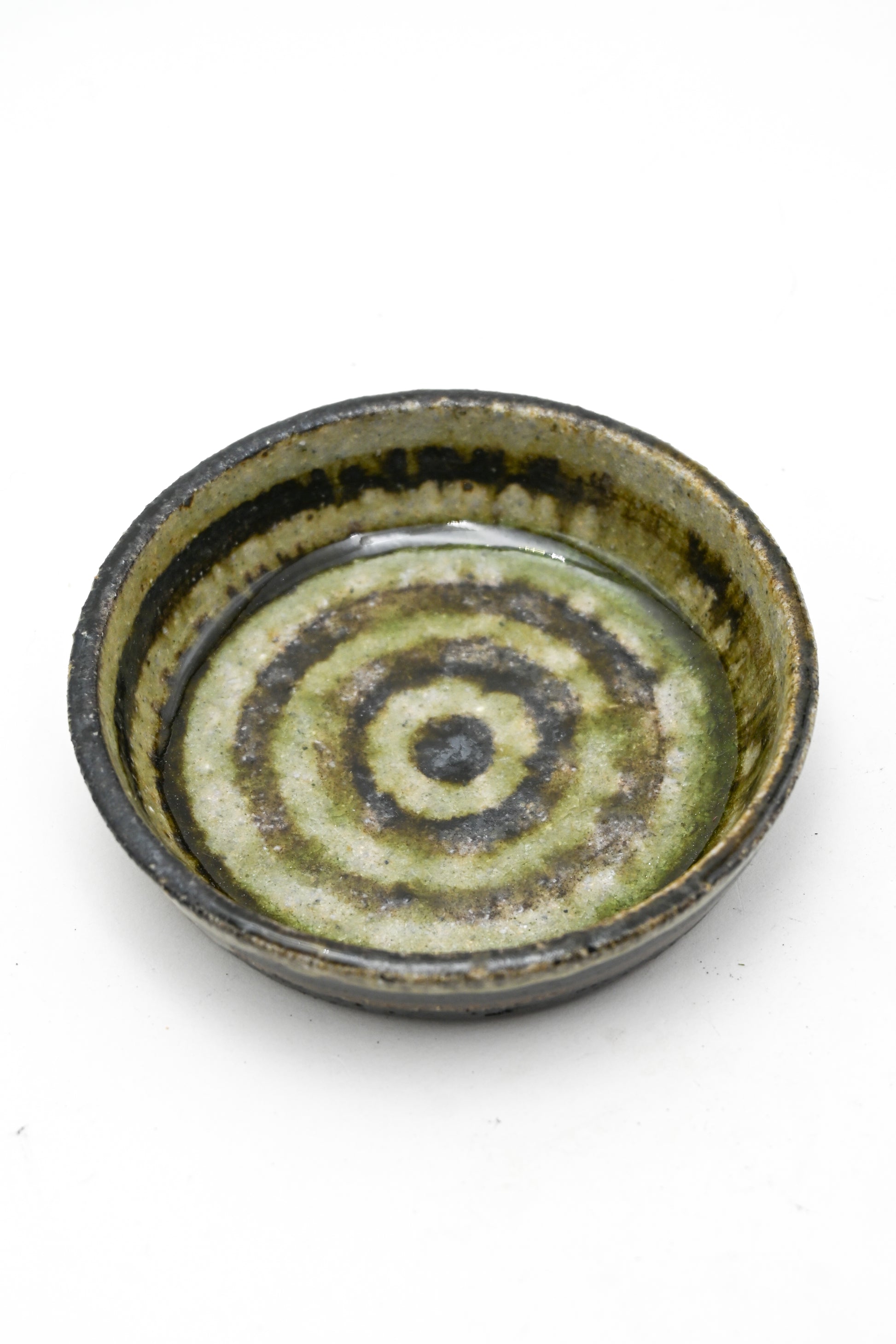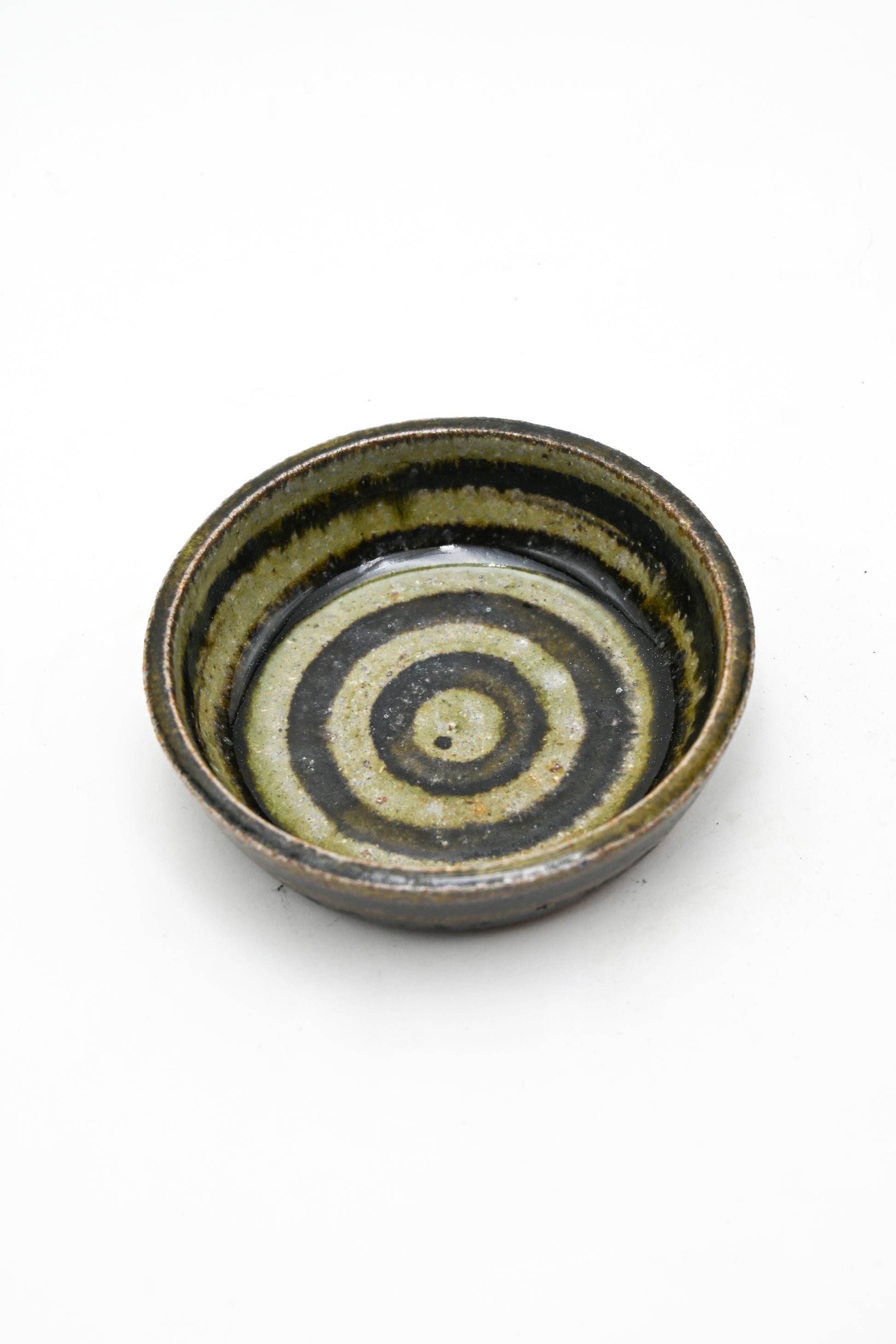 Wood fired hand-built trinket dish with handpainted glaze design. Perfect for a small dish of any kind, can be used for food such as dips or sauces, spices etc. or as a general jewelry dish, catchall, or ash tray. Wood fired with oak and pine for 24 hours, one of a kind piece. For the longevity of the piece it is recommended to hand wash with care.