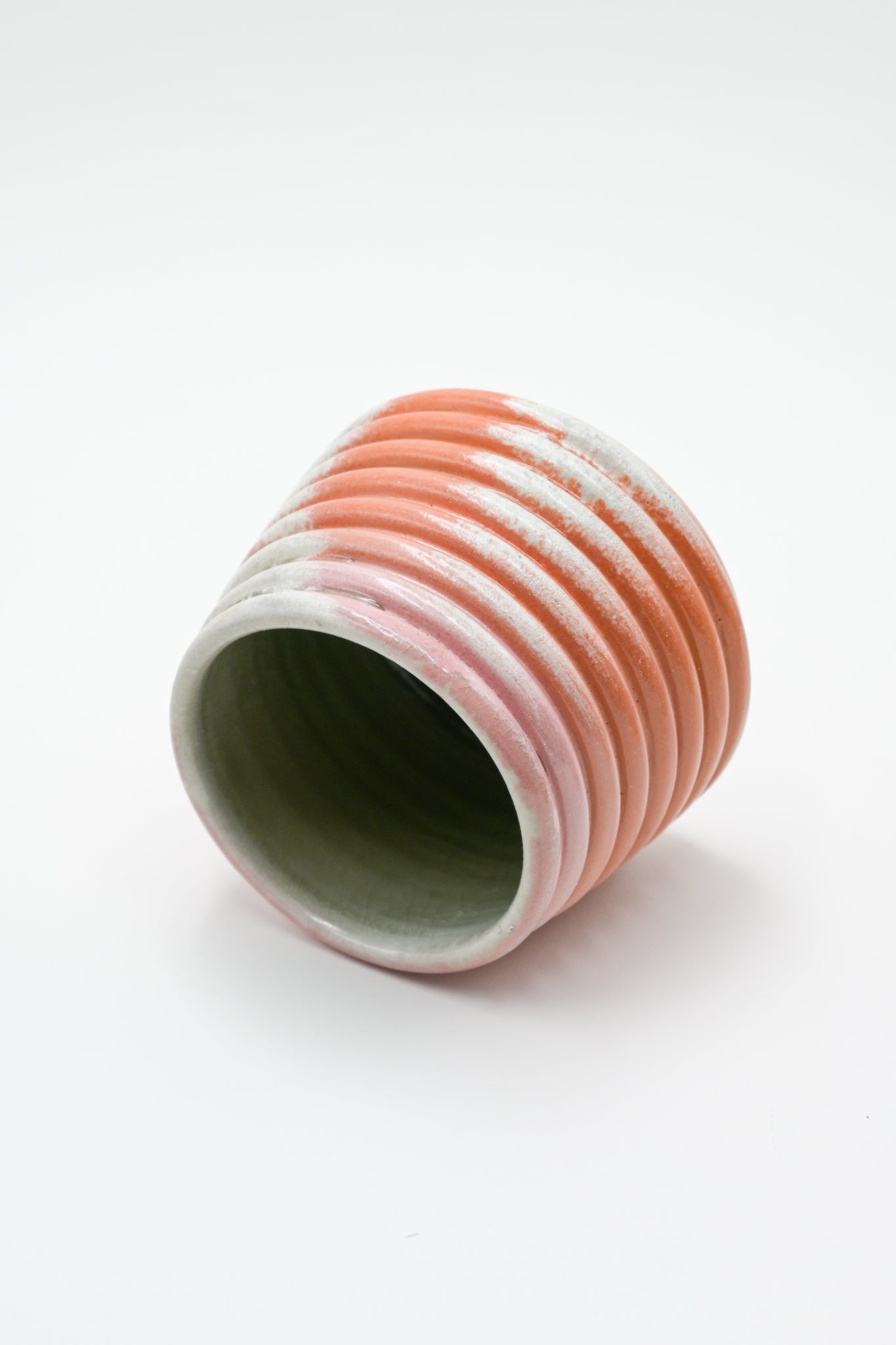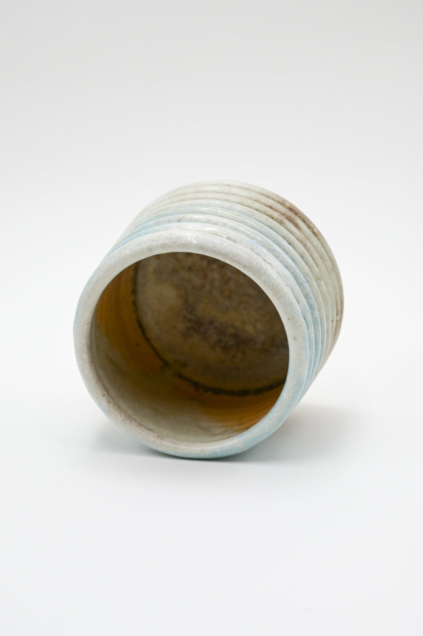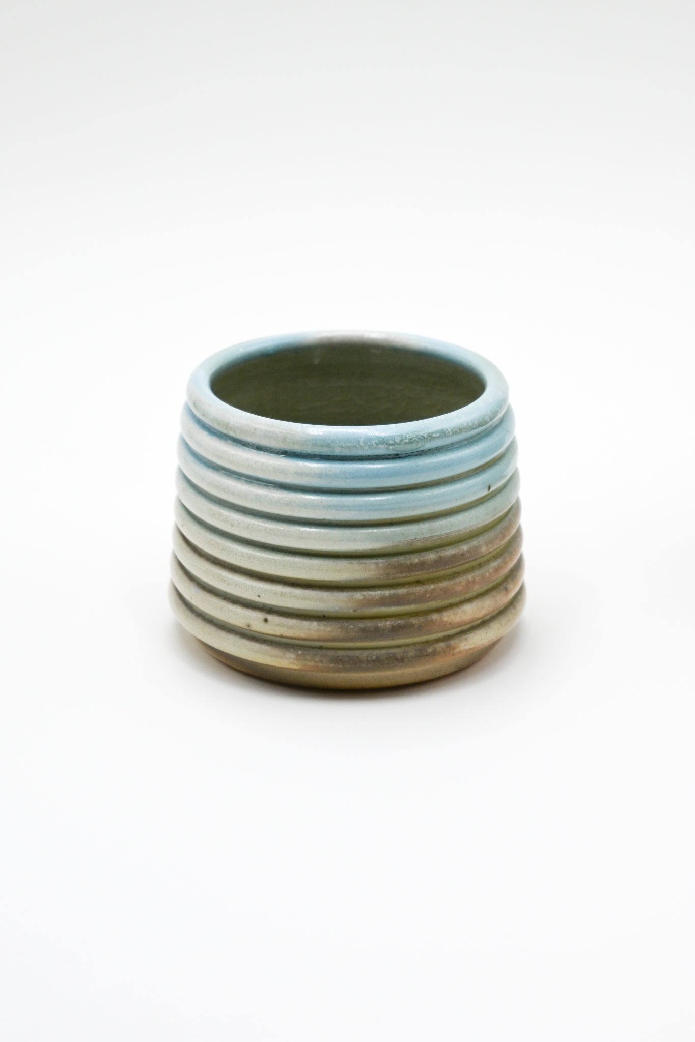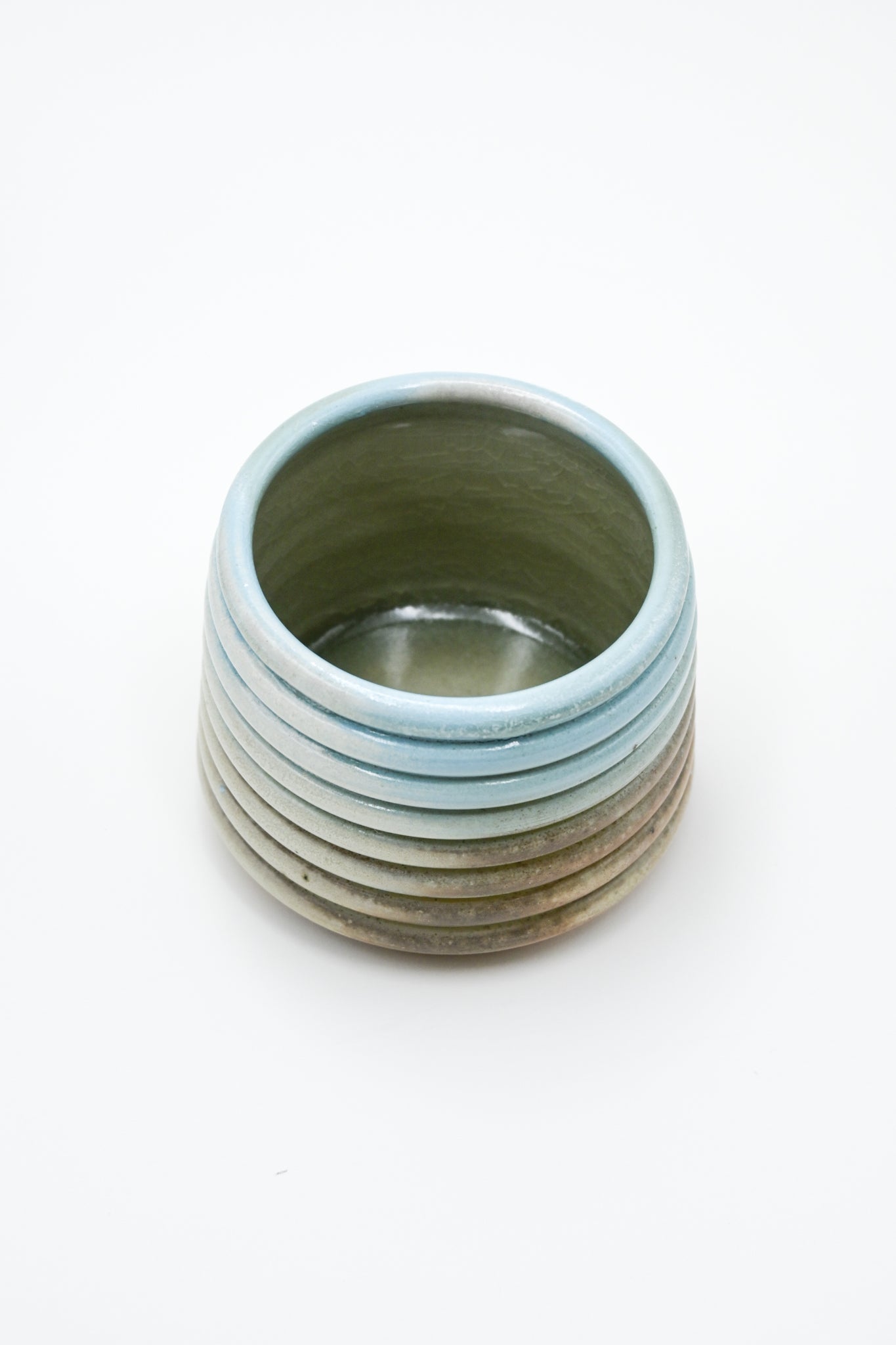 Wood fired wheel thrown stoneware tumblers with hand painted glaze. Wood fired in an atmospheric kiln for 48+ hours, each piece is one of a kind. Please note the interior / exterior glaze colors. Shino is the warm orange/brown interior glaze & Celadon is the blue/green interior glaze.
