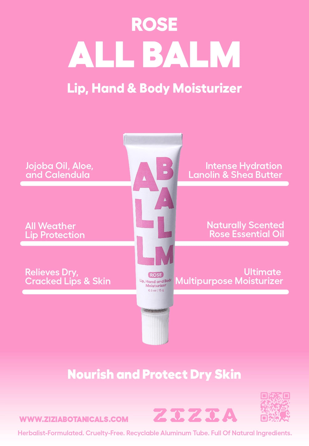 All Balm: Naturally soothes and moisturizes dry skin For whatever, wherever, whenever! Meet your herbal swiss army knife. This full-body salve is not your average goop. It’s got a reputation for rejuvenating chapped lips, quenching thirsty skin, and pepping up those tired under-eyes. And, oh no, it doesn’t stop there! Rub this on your hands, elbows, knees, and everywhere in between, you can also use this formula for tattoo aftercare.